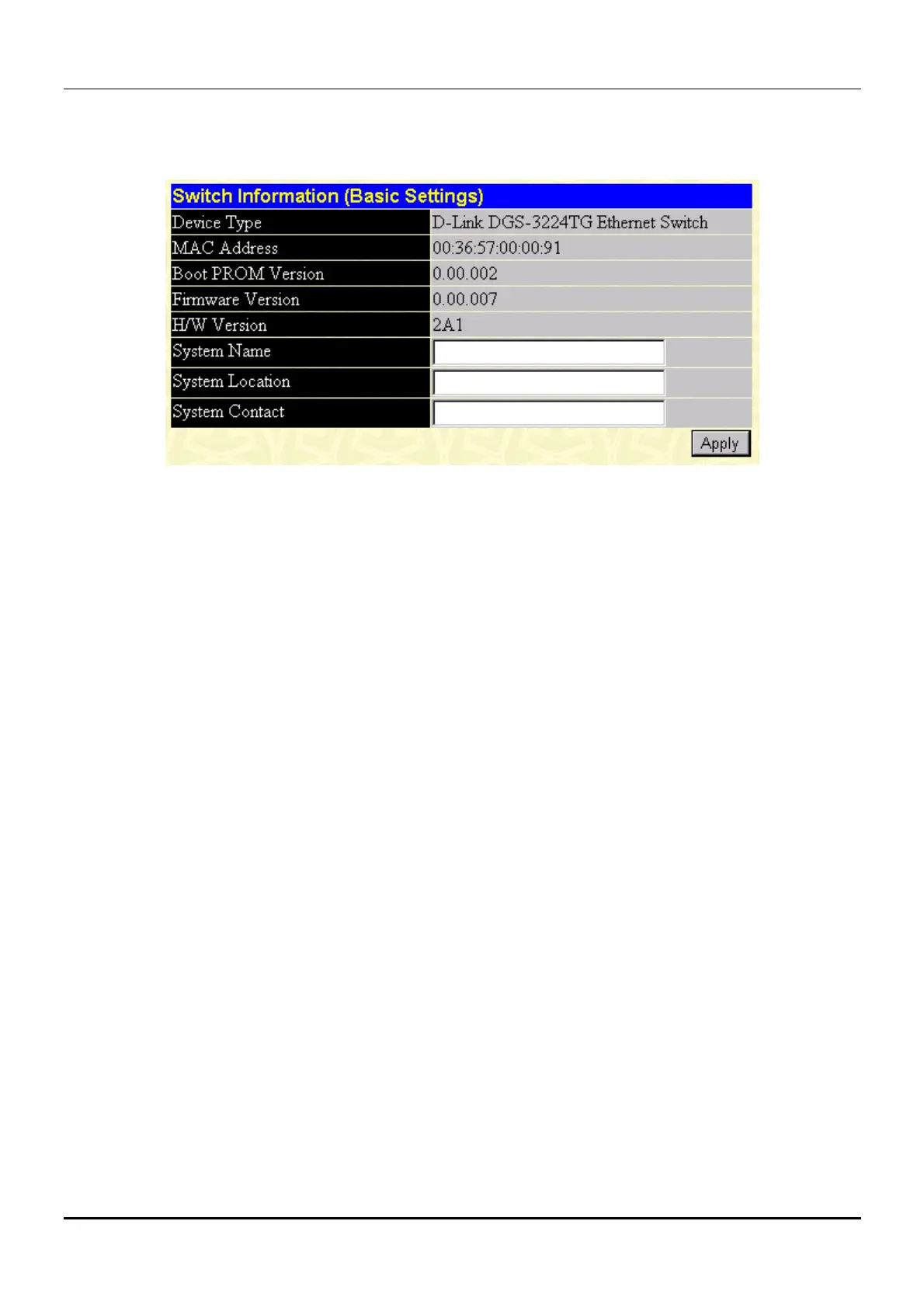 To set basic switch settings, enter a System Name in the first field, the physical location of the switch