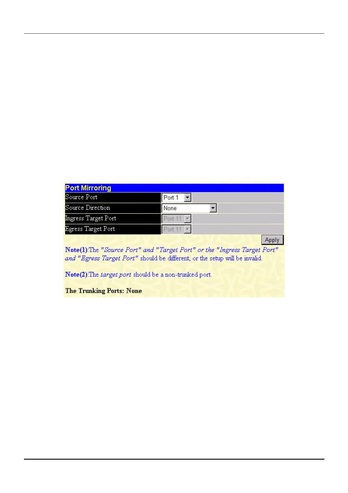 member of a trunk group. Please note a target port and a source port cannot be the same