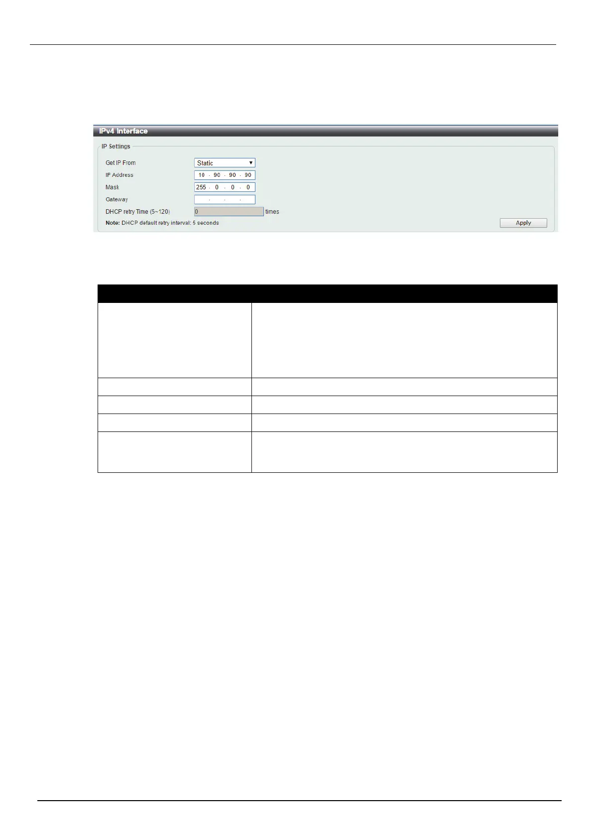To view the following window, click System > System Information Settings > IPv4 Interface, as shown