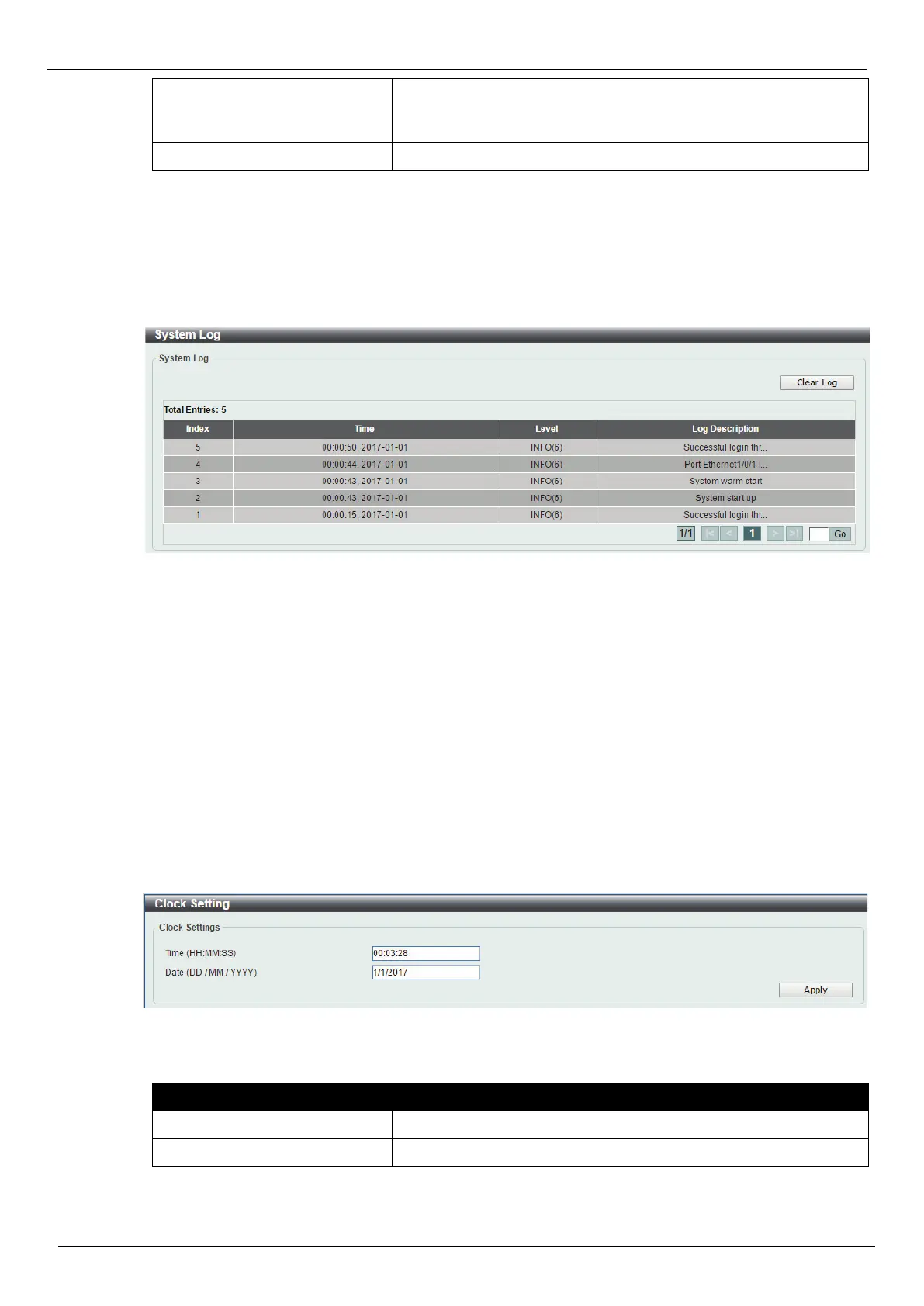 Click the Clear Log button to clear the system log entries displayed in the table.