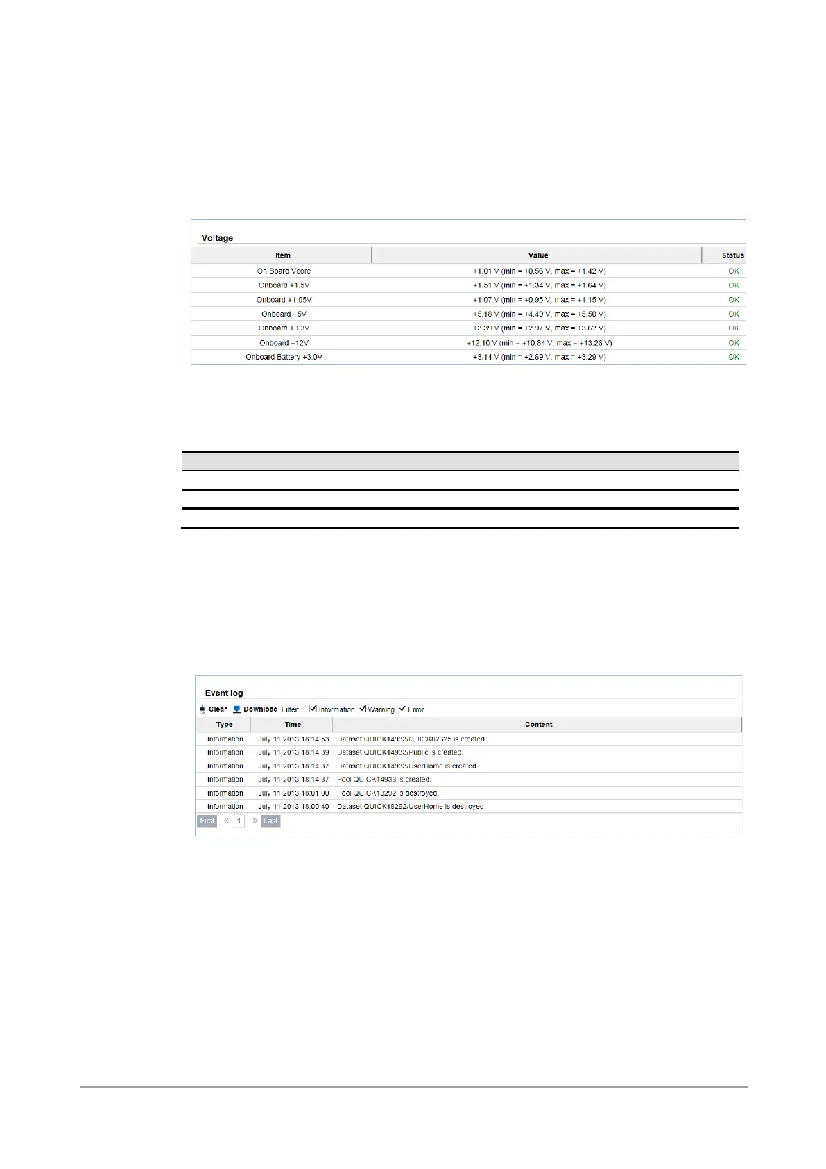 The Hardware monitor option provides the status of system voltage, temperature, power supply,
