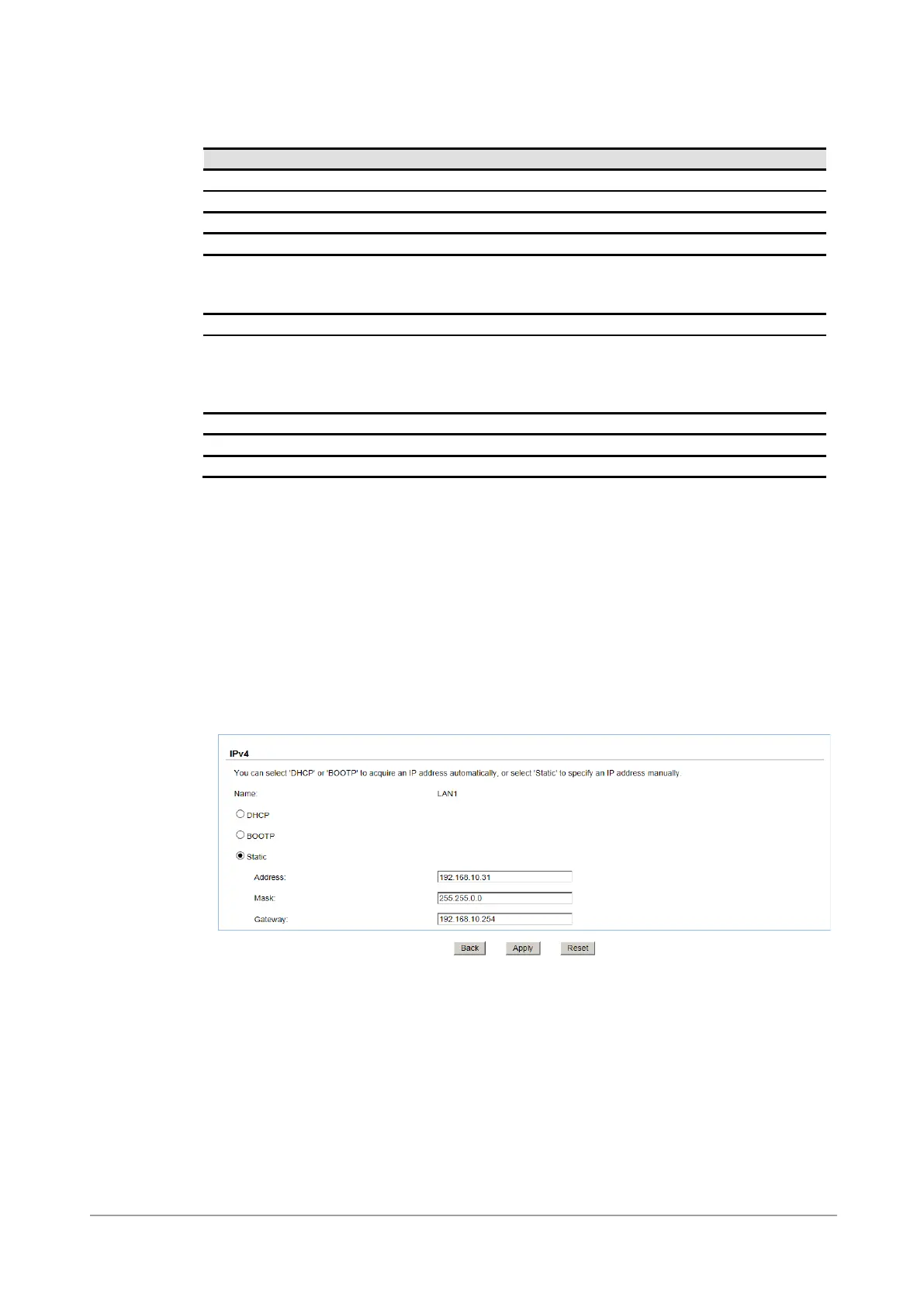 IPv4: There are three options: DHCP, BOOTP or specify a Static IP address. The default