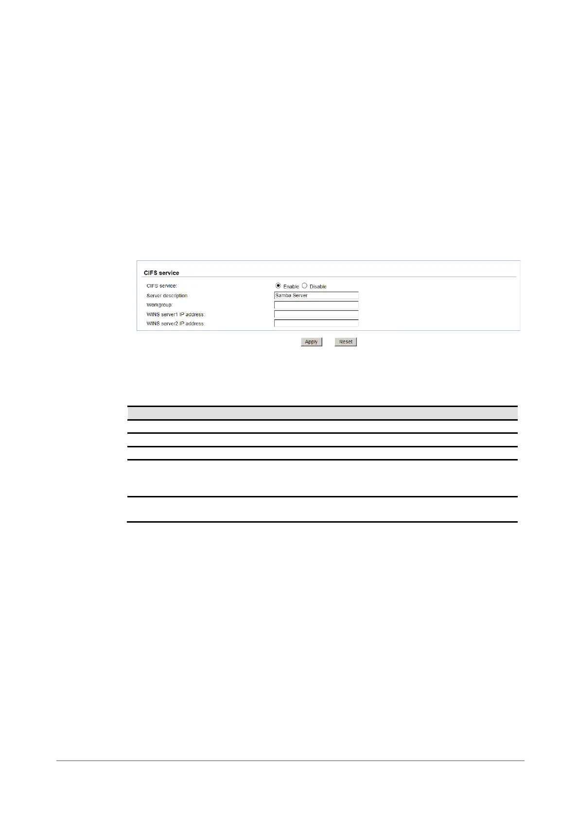 The CIFS (Common Internet File System) option is used to setup CIFS protocol. The CIFS is a network