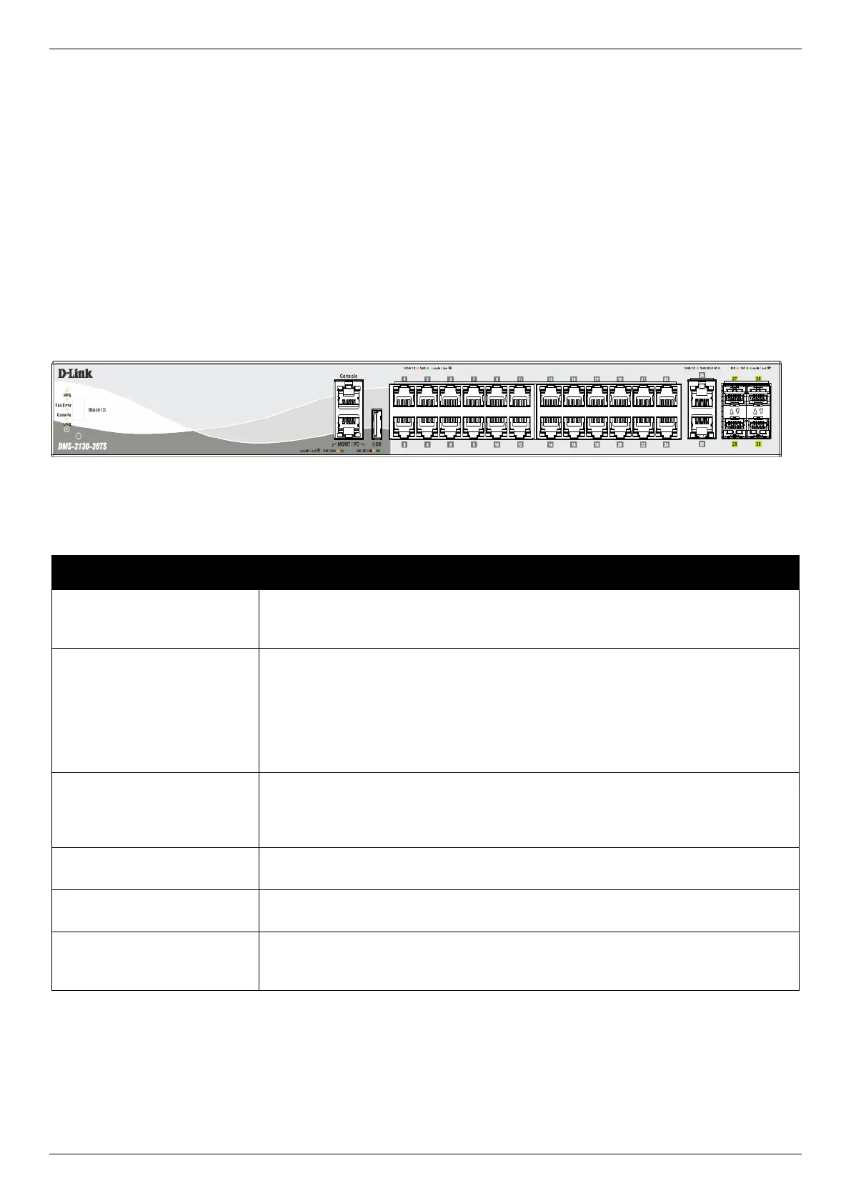 The front panel of DMS-3130-30TS features a variety of LED indicators and ports.