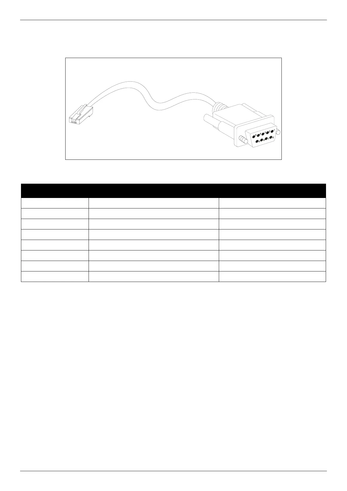 following diagram and table show the standard RJ45 to RS-232 cable and pin assignments.
