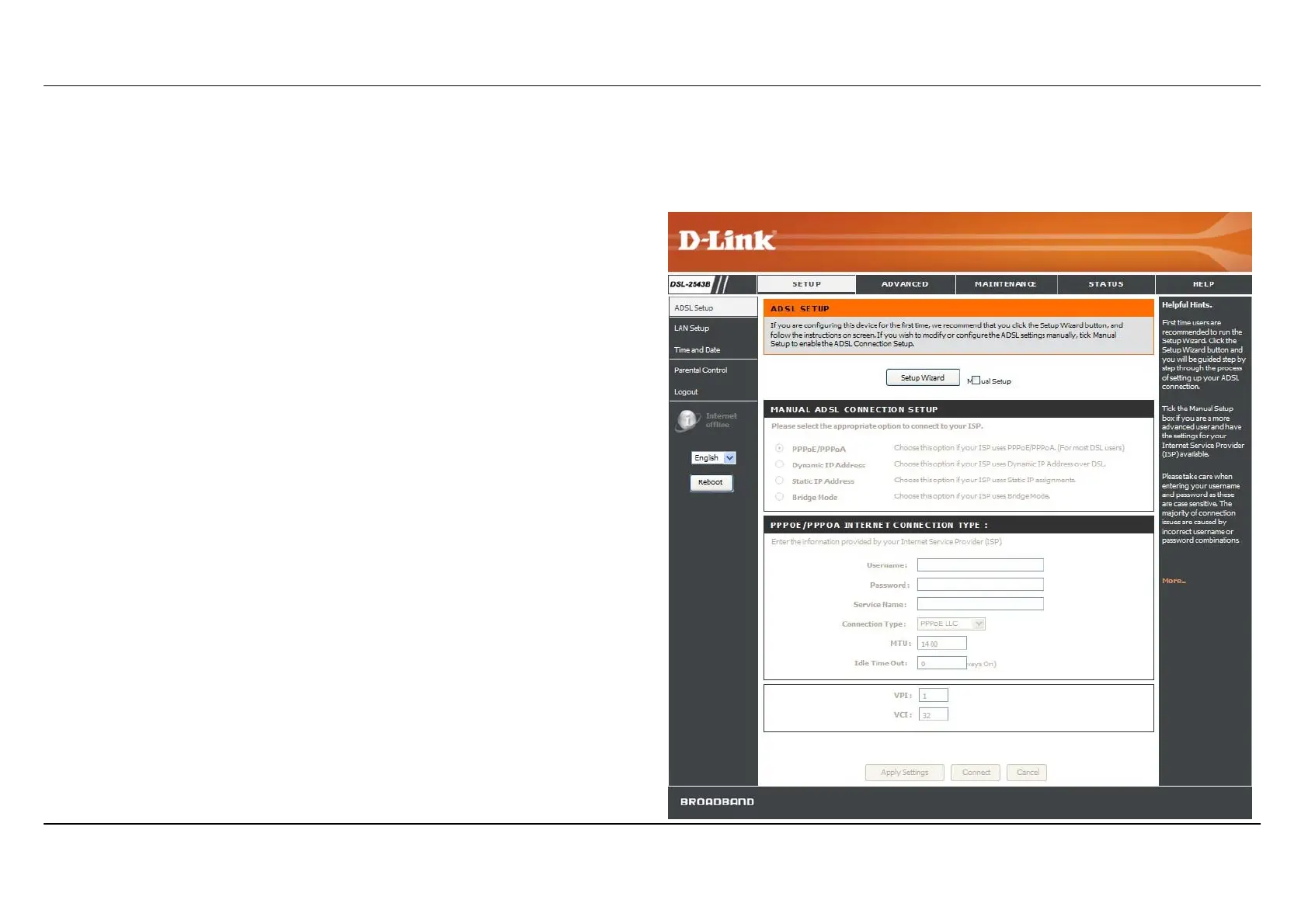 Bekijk gratis de handleiding van D-Link DSL-2543B, stel vragen en lees de antwoorden op veelvoorkomende problemen, of gebruik onze assistent om sneller informatie in de handleiding te vinden of uitleg te krijgen over specifieke functies.