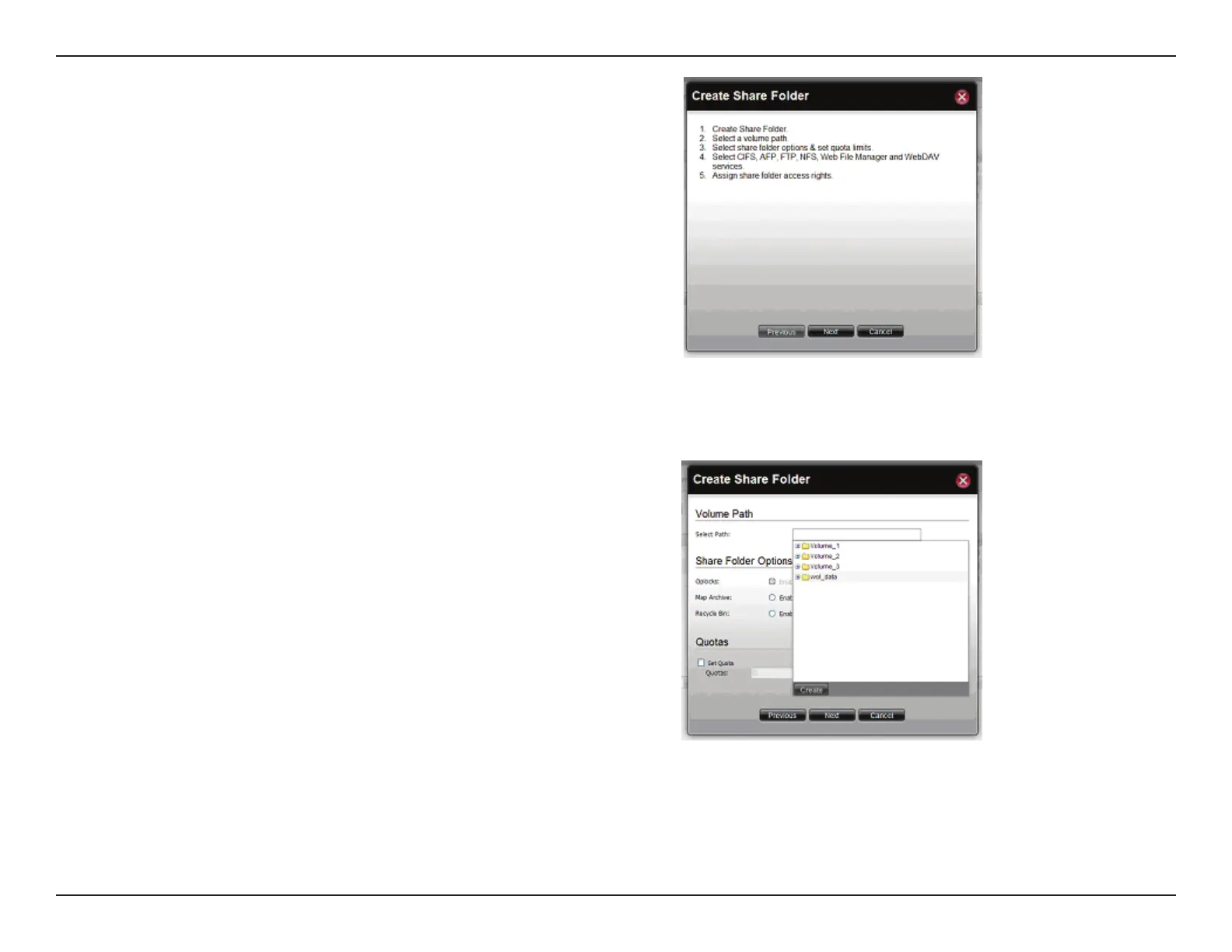 Under Volume Path, enter the Path directory, a drop-down