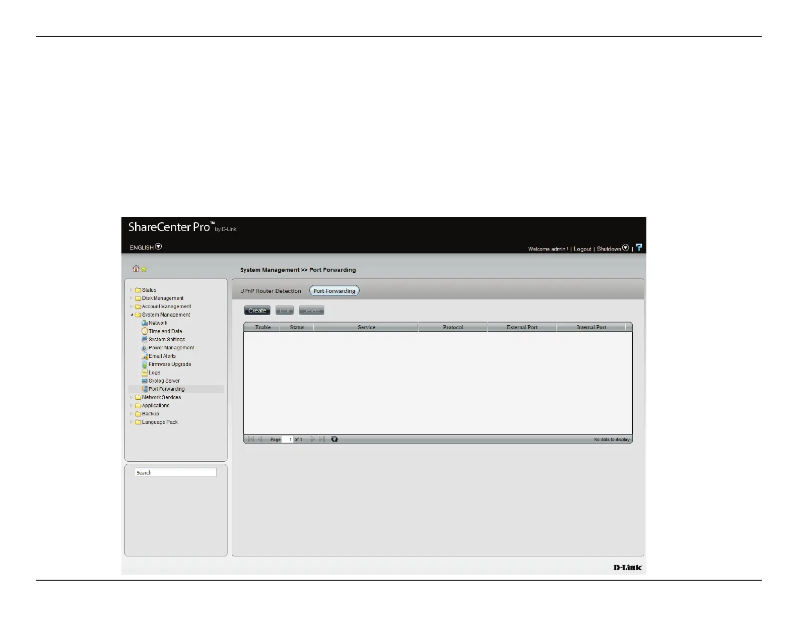 To do this, click System Management, Port Forwarding, click the Port Forwarding button. Then click the Create button.