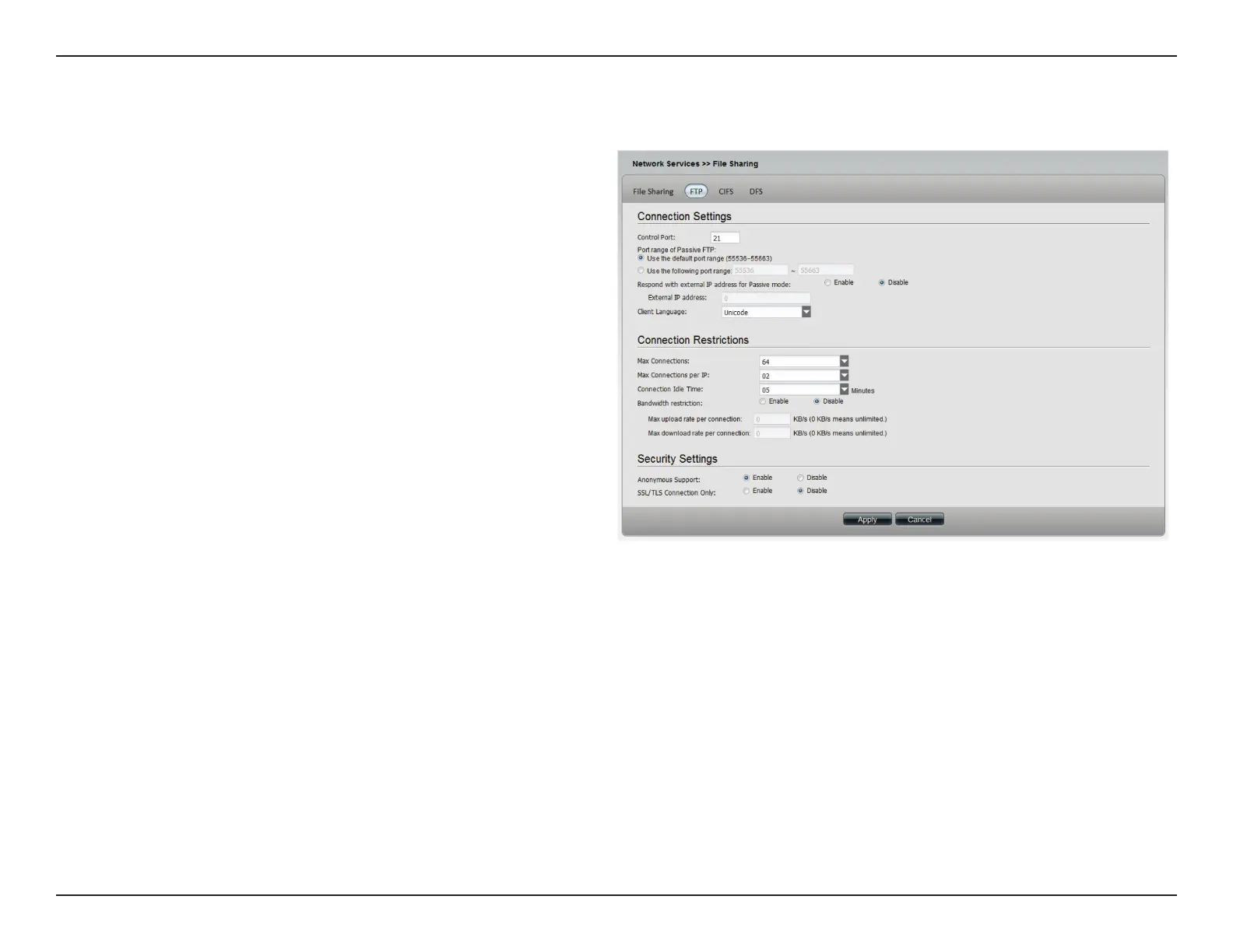 FTP connection. Enter the number in KB/s for the