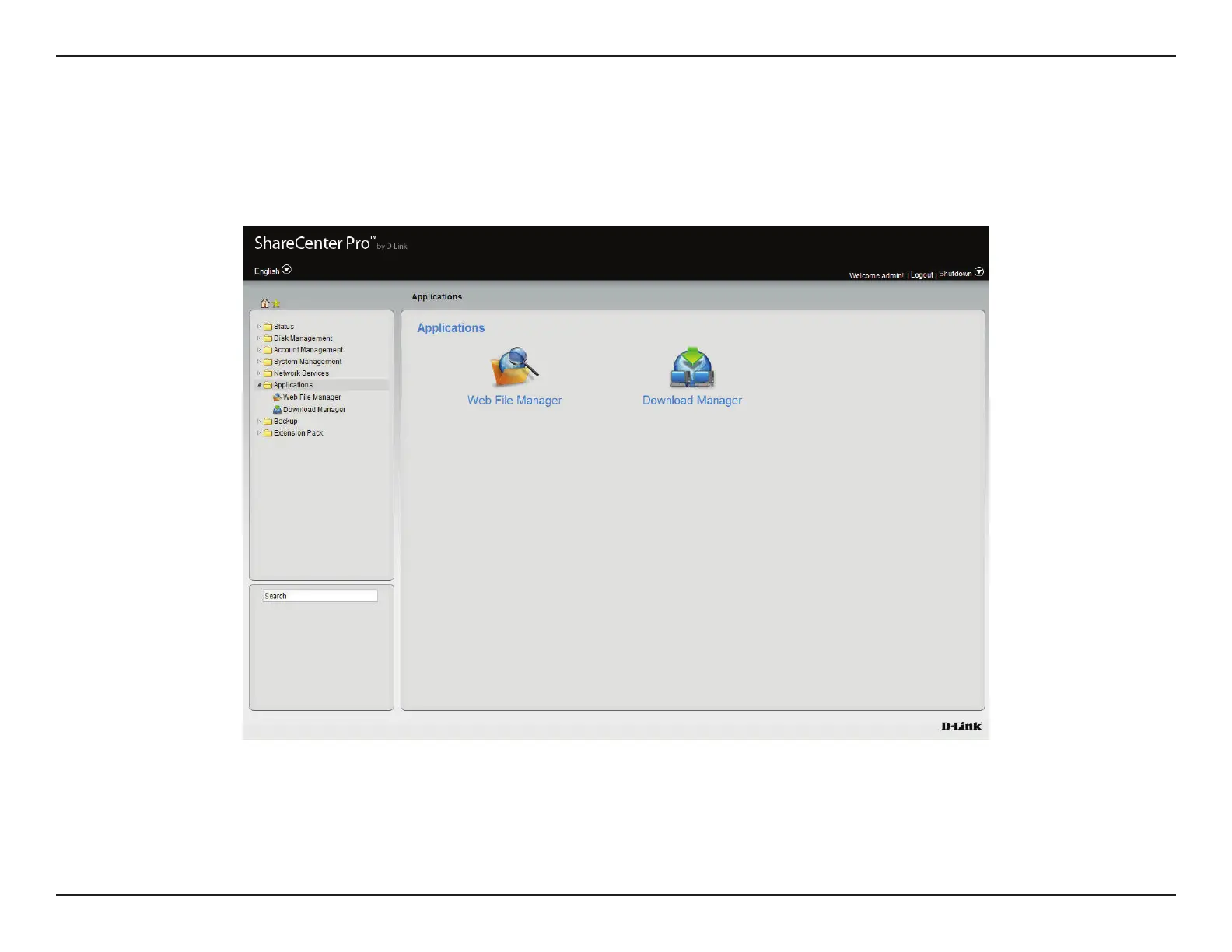 This folder contains the Web File Manager and Download Manager. Click the folder to see the subcategories.
