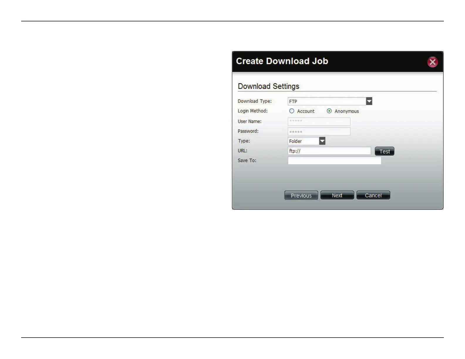 User Name Enter a user name for downloading.