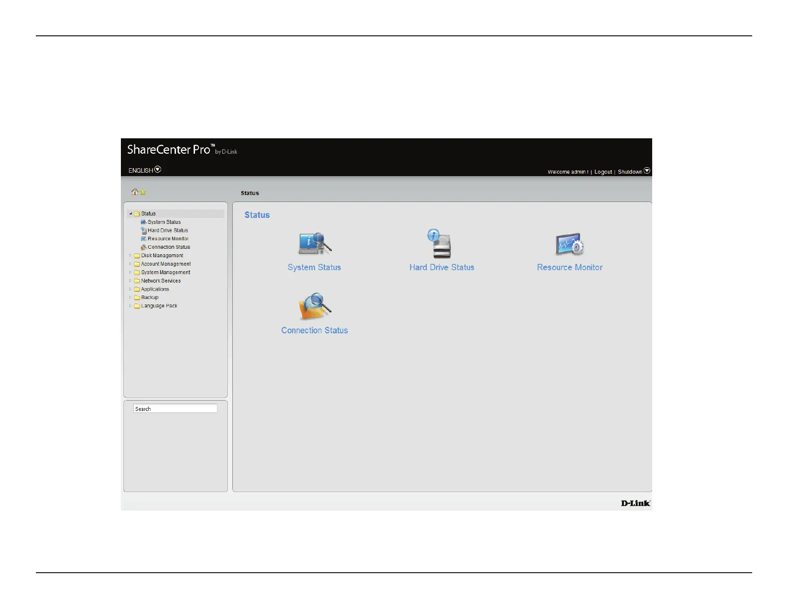 This folder contains System Status, Hard Drive Status, Resource Monitor, and Connection Status. Click each folder to see the
