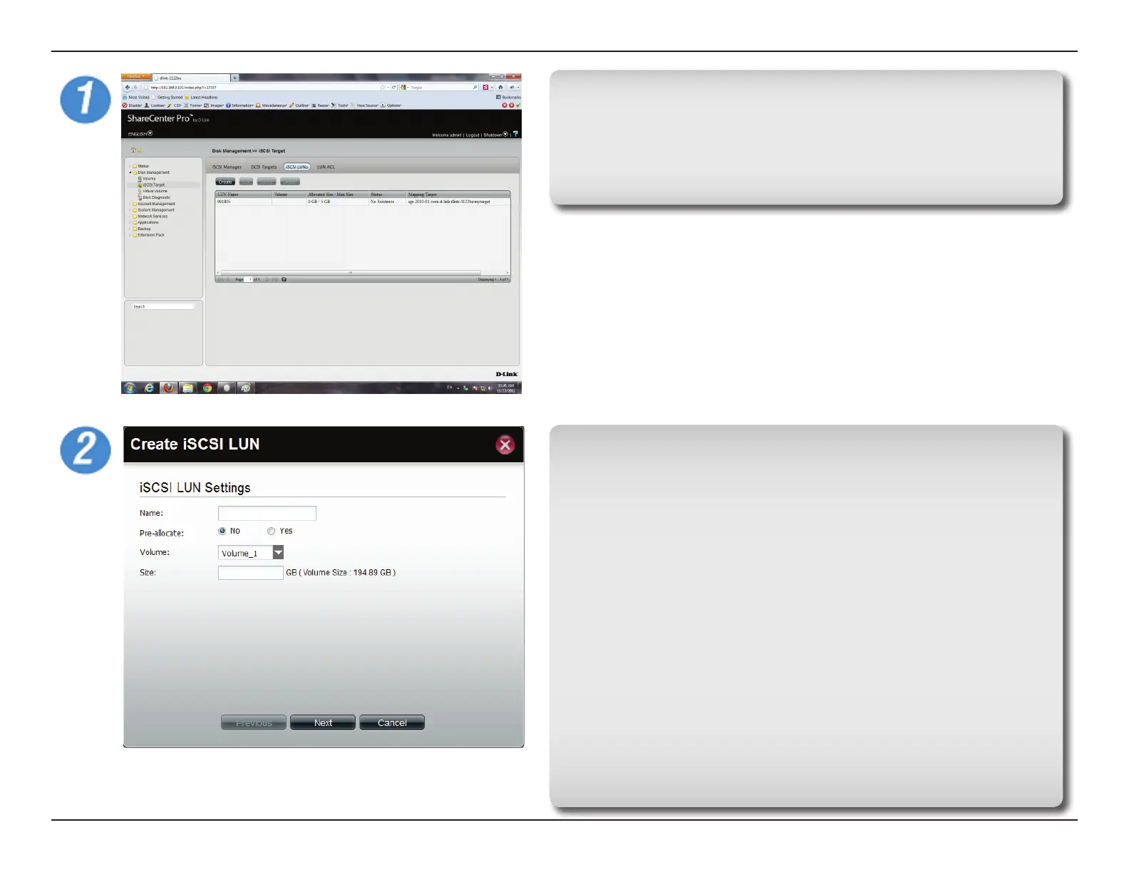 Pre-allocate: Select “Yes” to allocate volume space as the iSCSI LUN