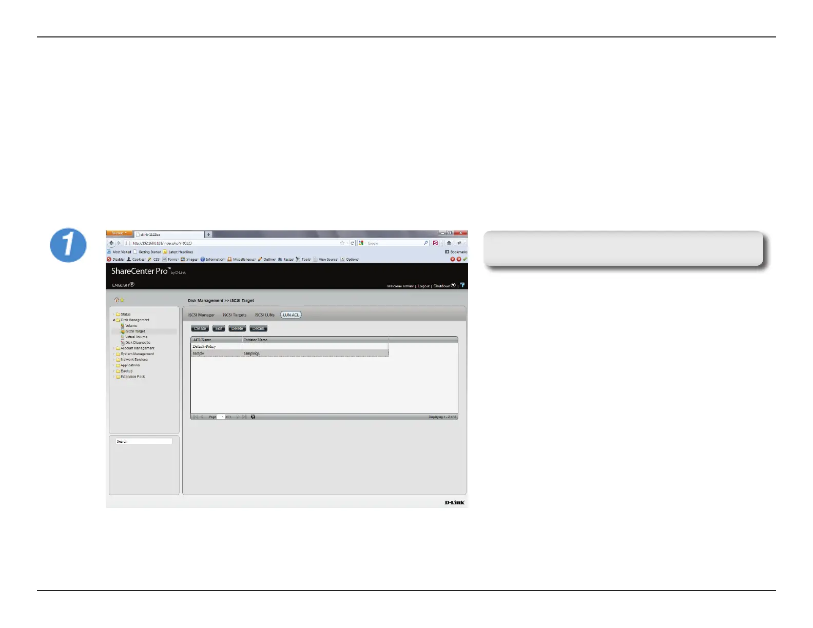 Caution: Disconnect the iSCSI initiator from the ShareCenter Pro before editing the LUN ACL. Failure to do so can cause system