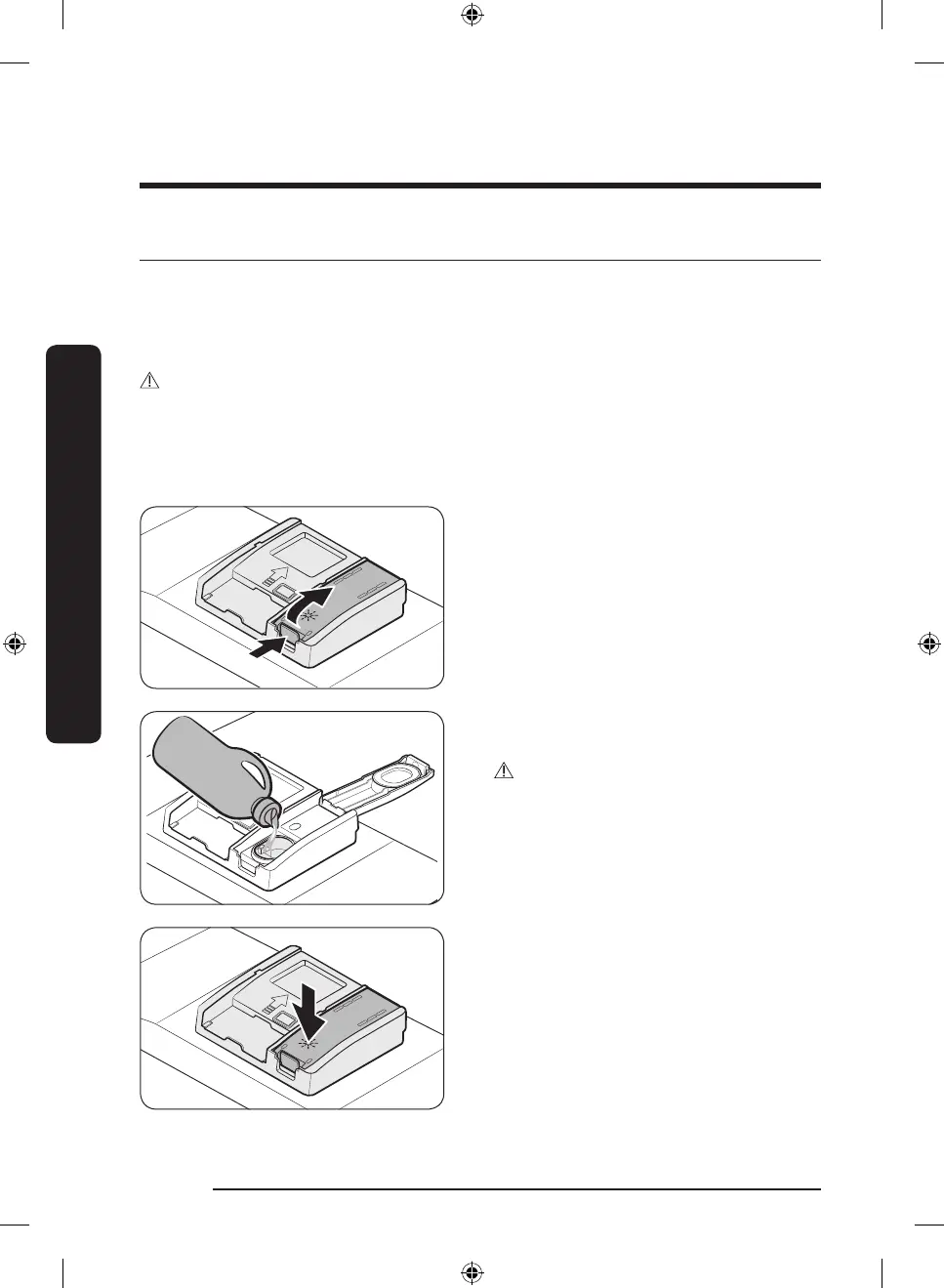 • Do not apply any type of detergent to the rinse aid reservoir.