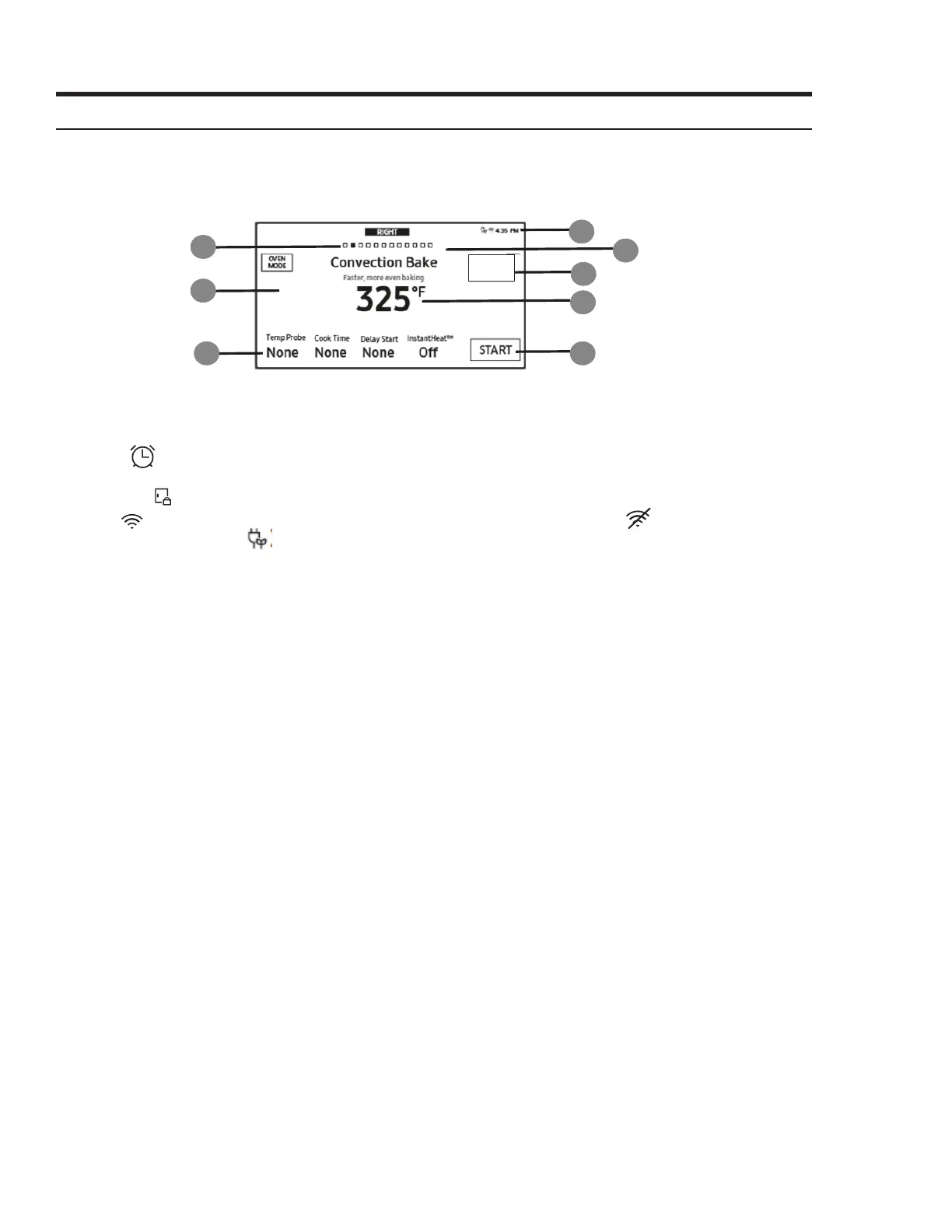 • InstantHeat™: Shows that this feature is on/off; appears in Convection Bake and Convection Roast modes.