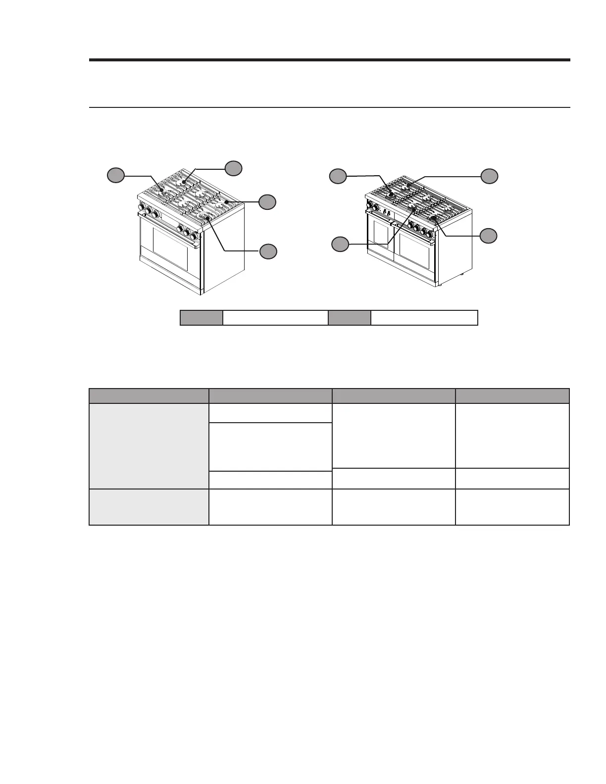 Each burner is designed for specic cooking purpose as below table.