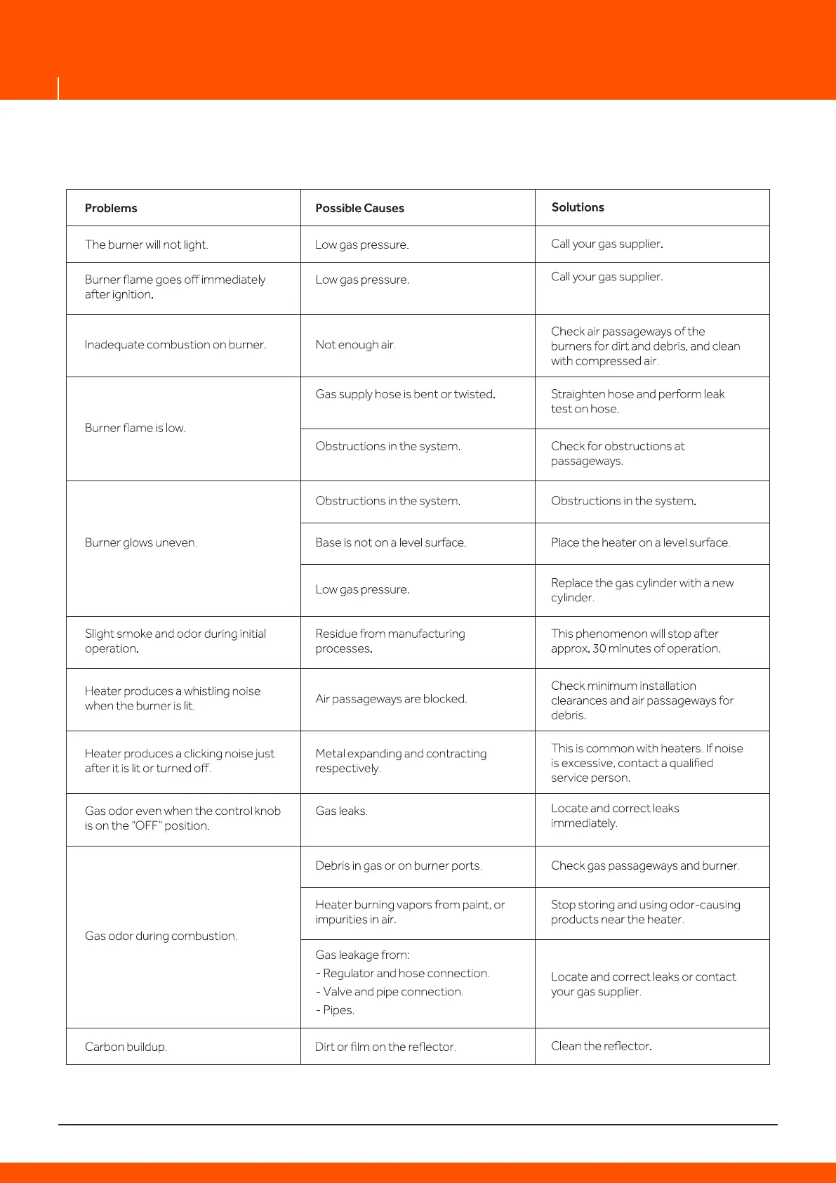 • lnspect hose before use. Do not use the heater if there is evidence of abrasion or wear.