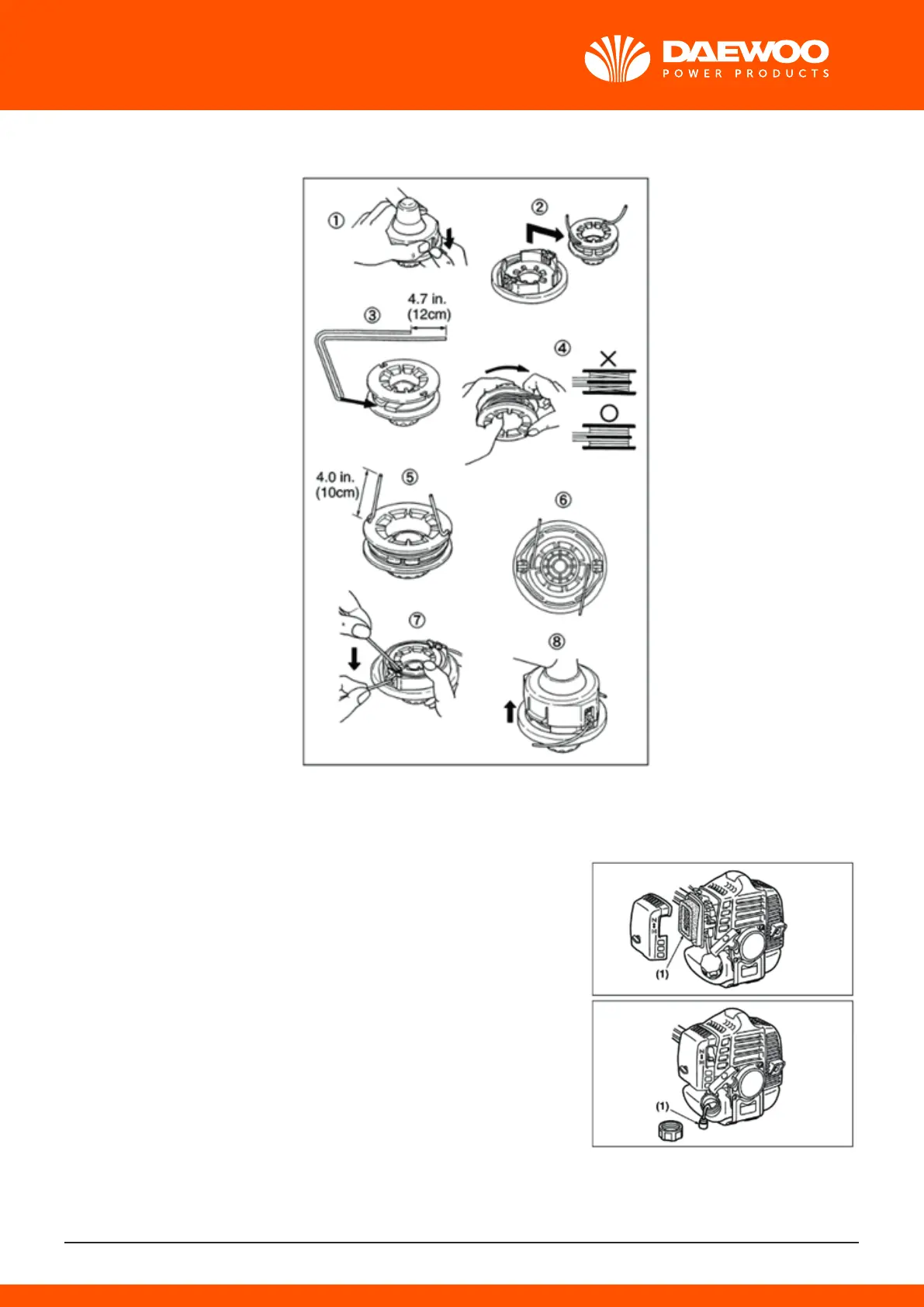 1. For replacement line, use a diameter of 2.4mm (.095in). The spool is capable for a line up to 6m