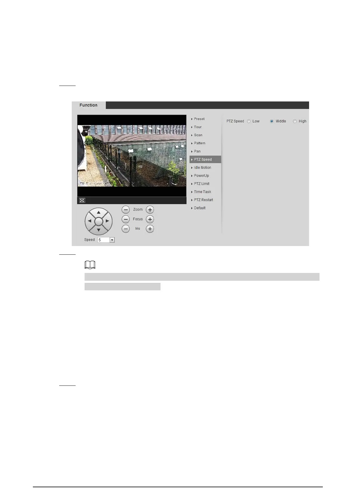 PTZ speed means the rotation speed of the PTZ camera during touring, pattern, or auto tracking.