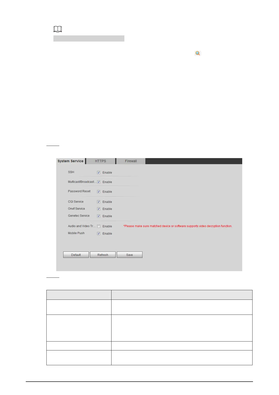 You can configure system service, HTTPS, and firewall.