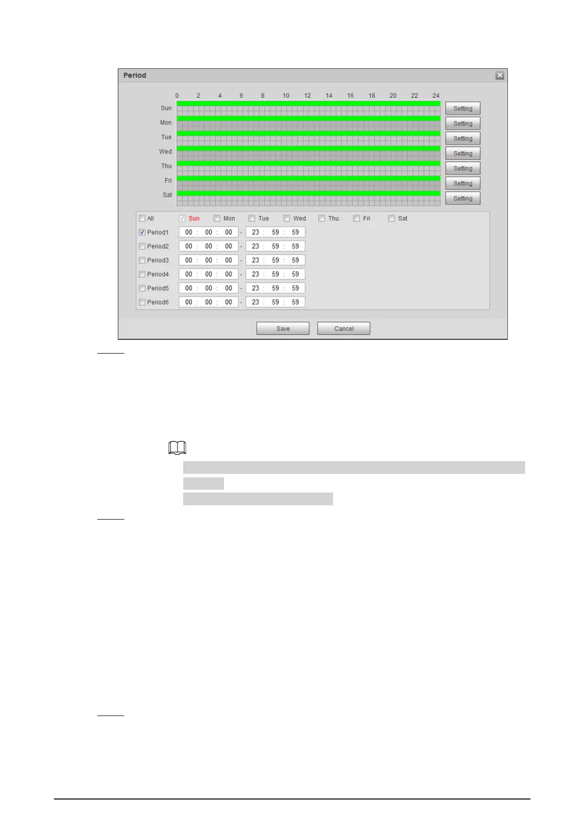 Step 2 Set arming periods. Alarms will be triggered in the time period in green on the timeline.