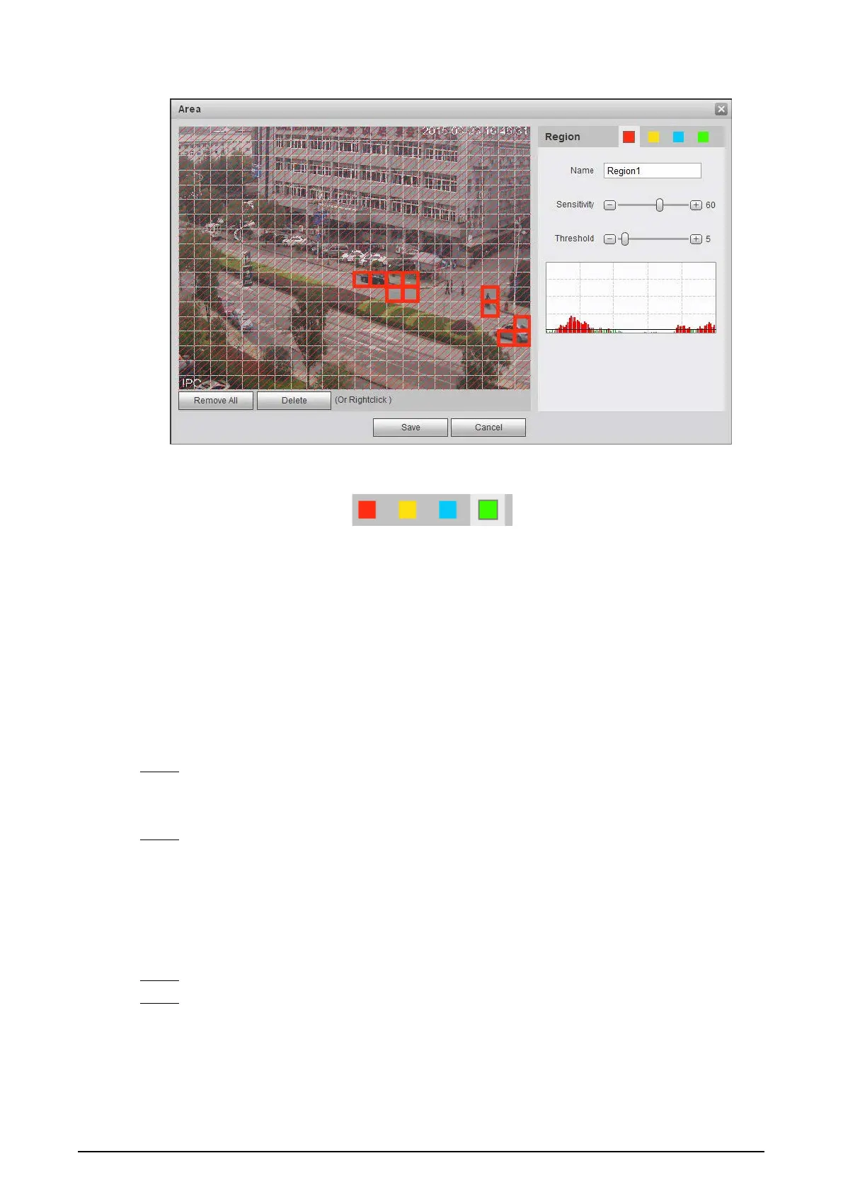 2) Select a color and set the region name. Select an effective area for Motion Detection in