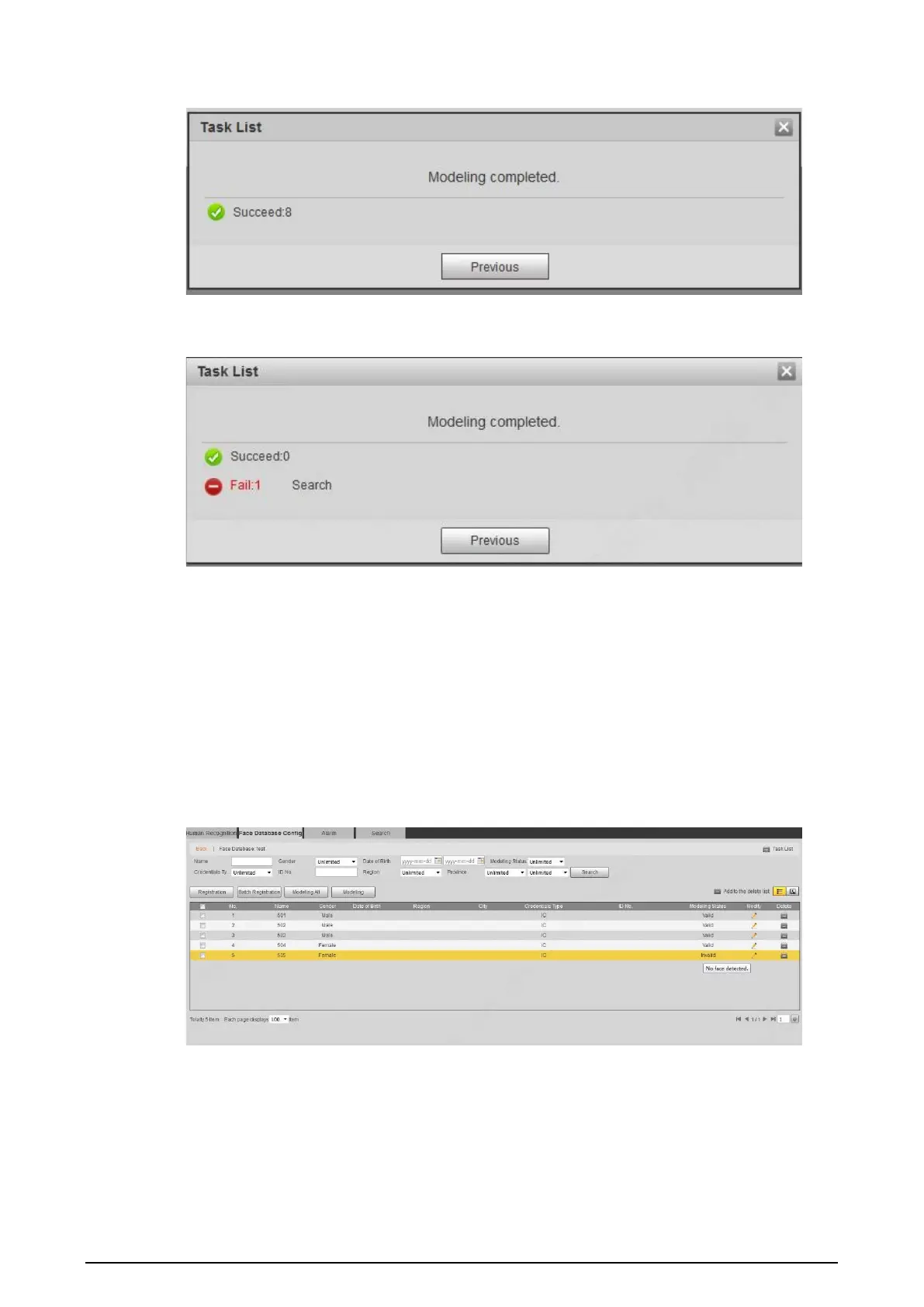 Figure 5-55 Modeling status (list)