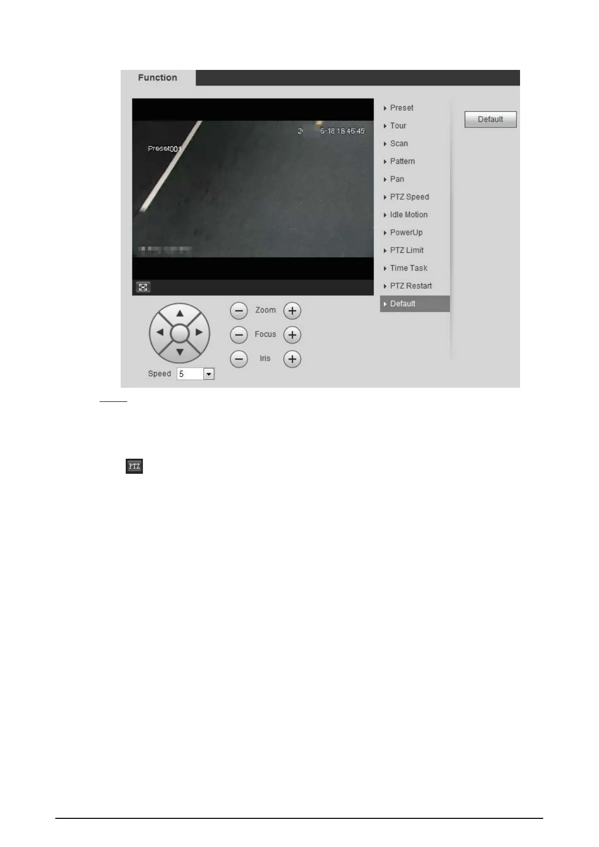 interface, and the PTZ configuration panel is displayed. You can control PTZ and
