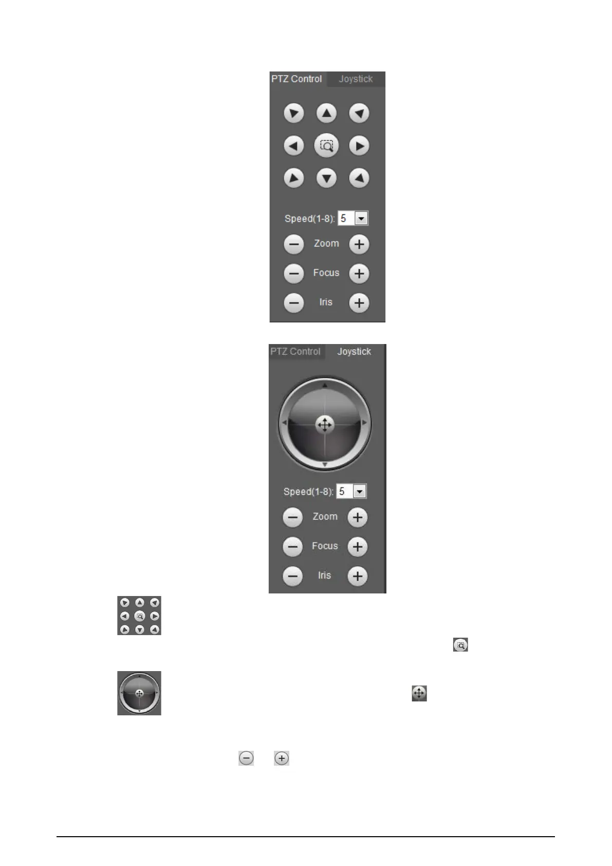 Zoom, focus and iris: Click or to adjust zoom, focus and iris.