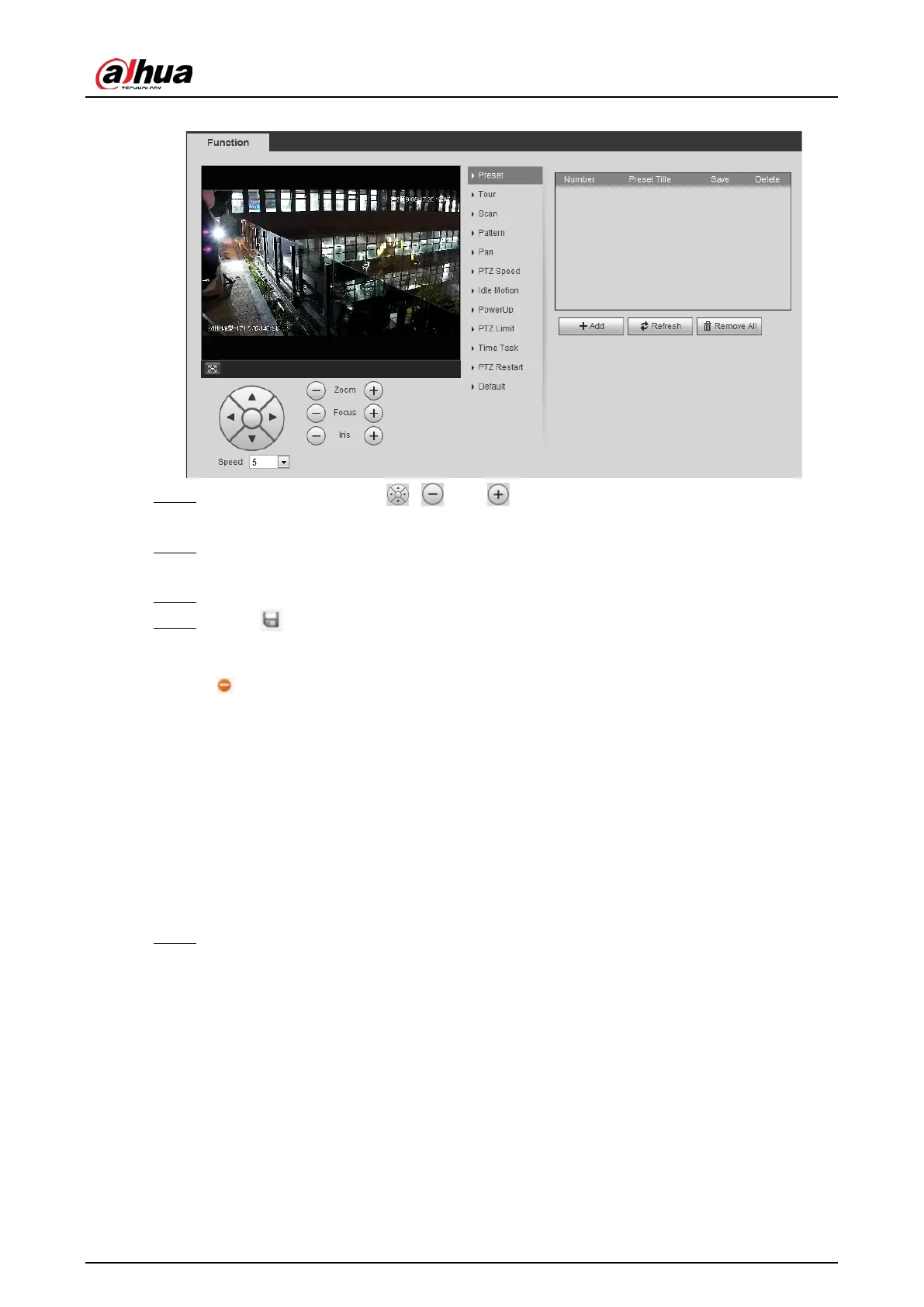 Step 2 Set the speed, and click , and to adjust the parameters of direction, zoom,