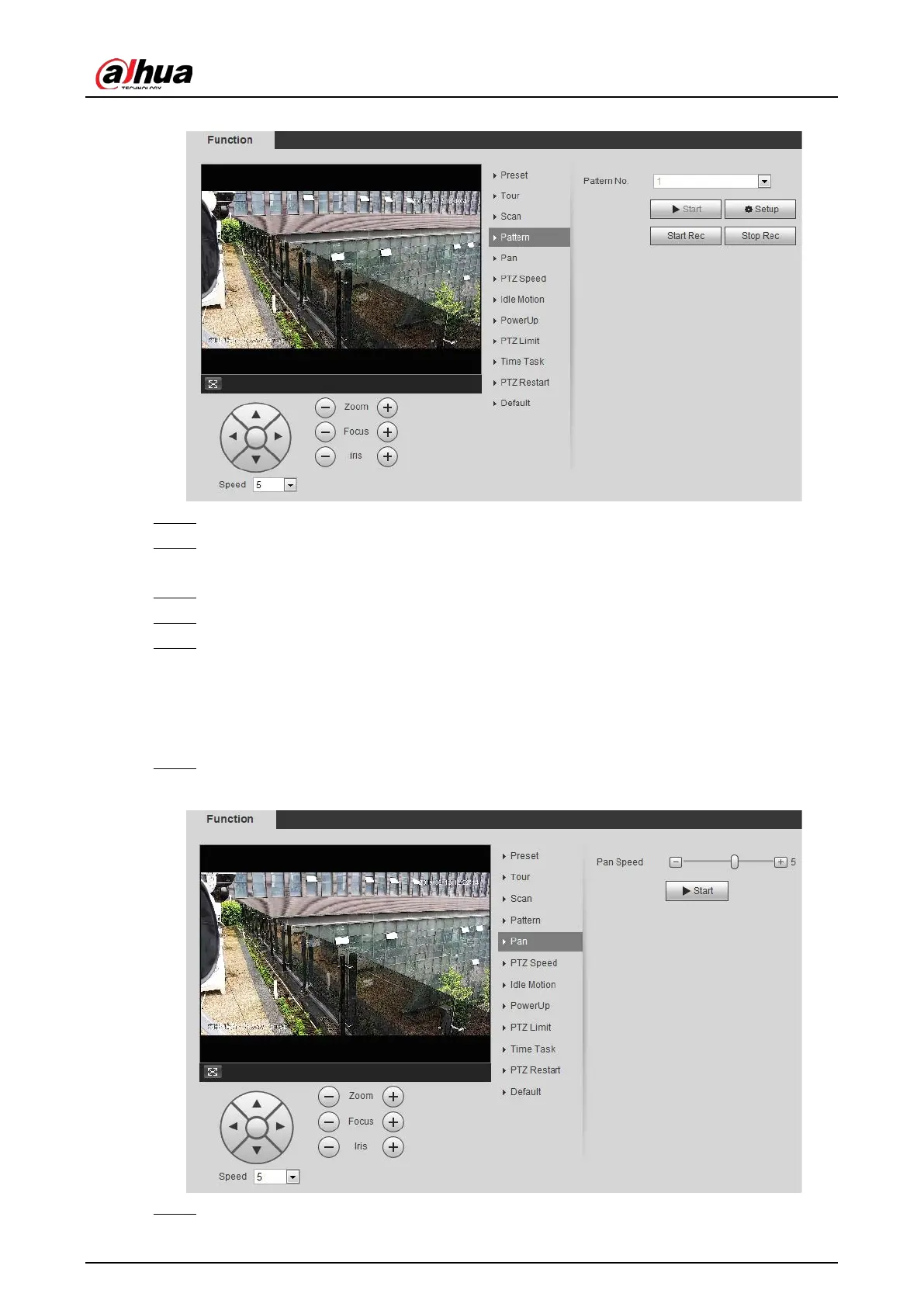 Enable Pan, the camera can realize continuous 360° horizontal rotation at a certain speed.