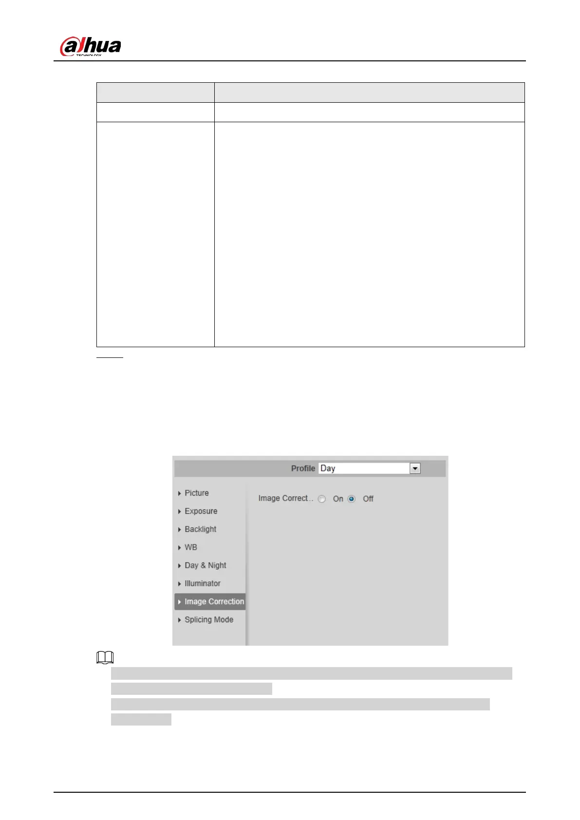 When the device enables image correction, intelligent event and sub stream 2 are closed