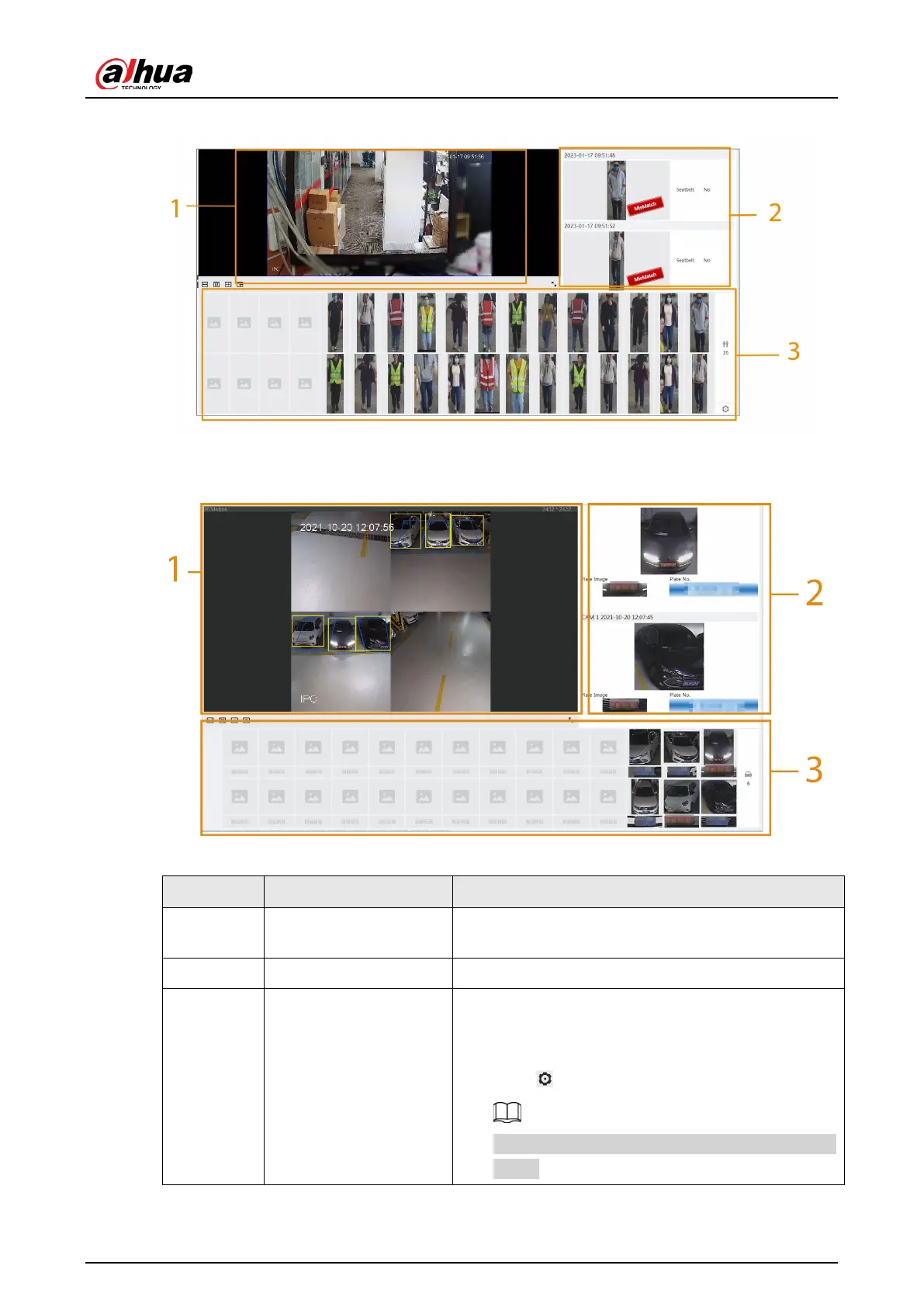 Table 7-6 Description of layout (face mode, Analytics mode and PPE detection mode)