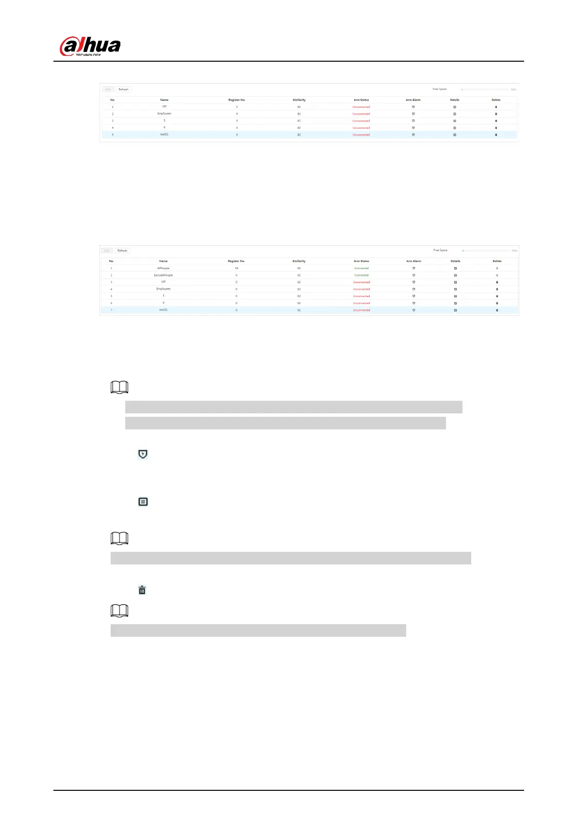 Click to configure the parameters of arm alarm. For details, see "8.2.3 Setting Arm