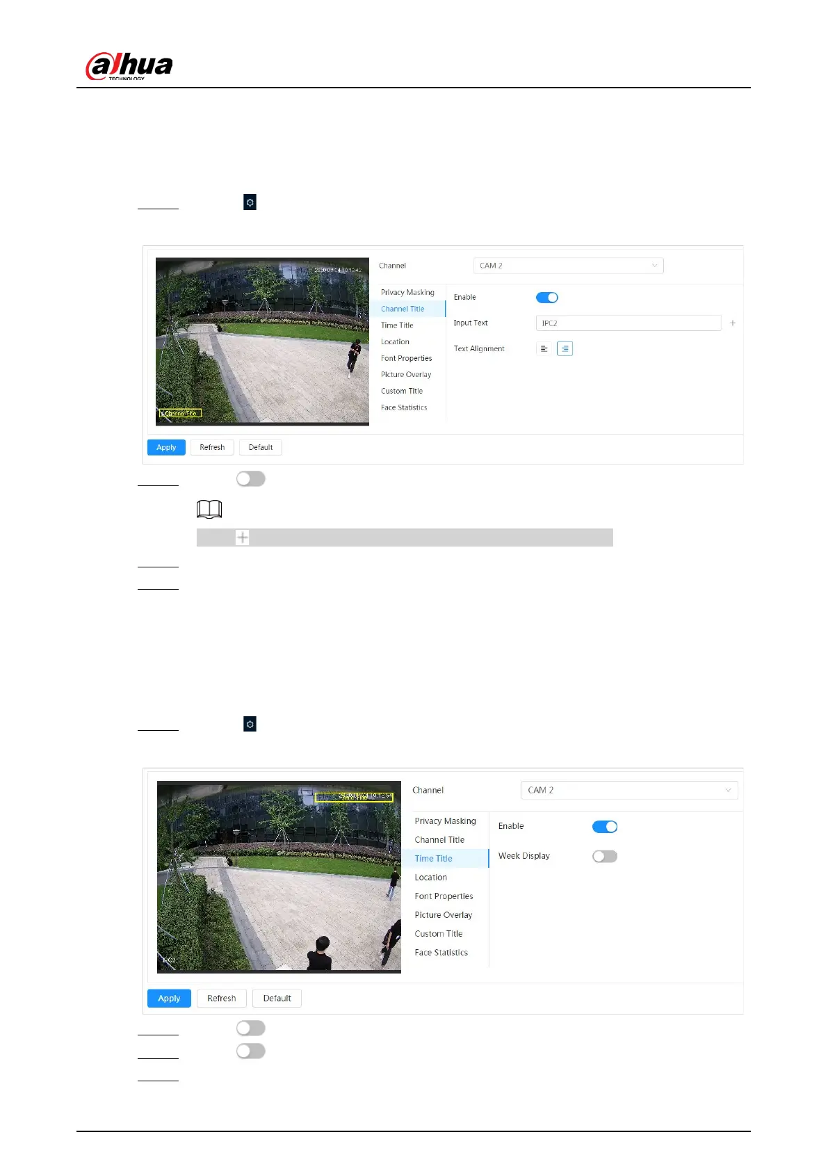 Step 1 Select > Camera > Encode > Overlay > Time Title.