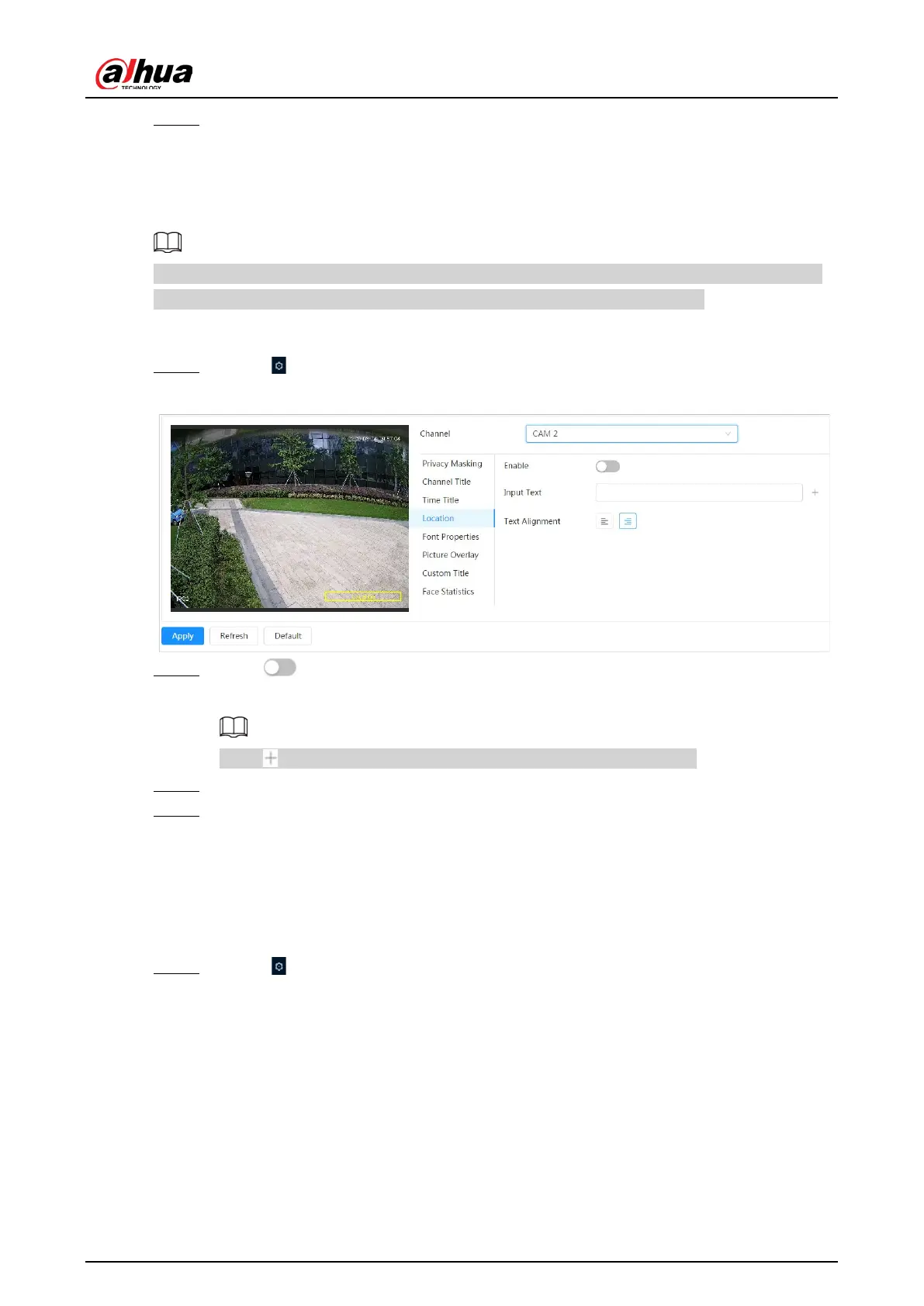 Step 1 Select > Camera > Encode > Overlay > Location.
