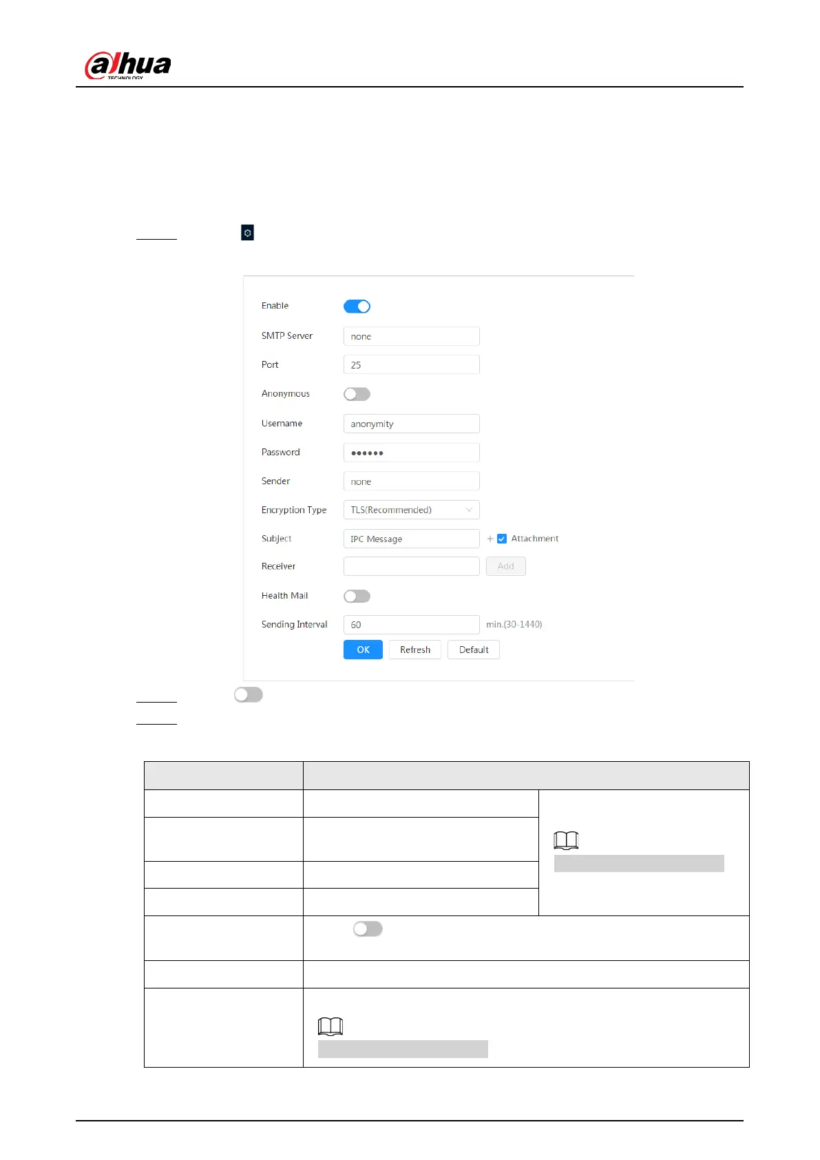 Configure email parameter and enable email linkage. The system sends email to the defined