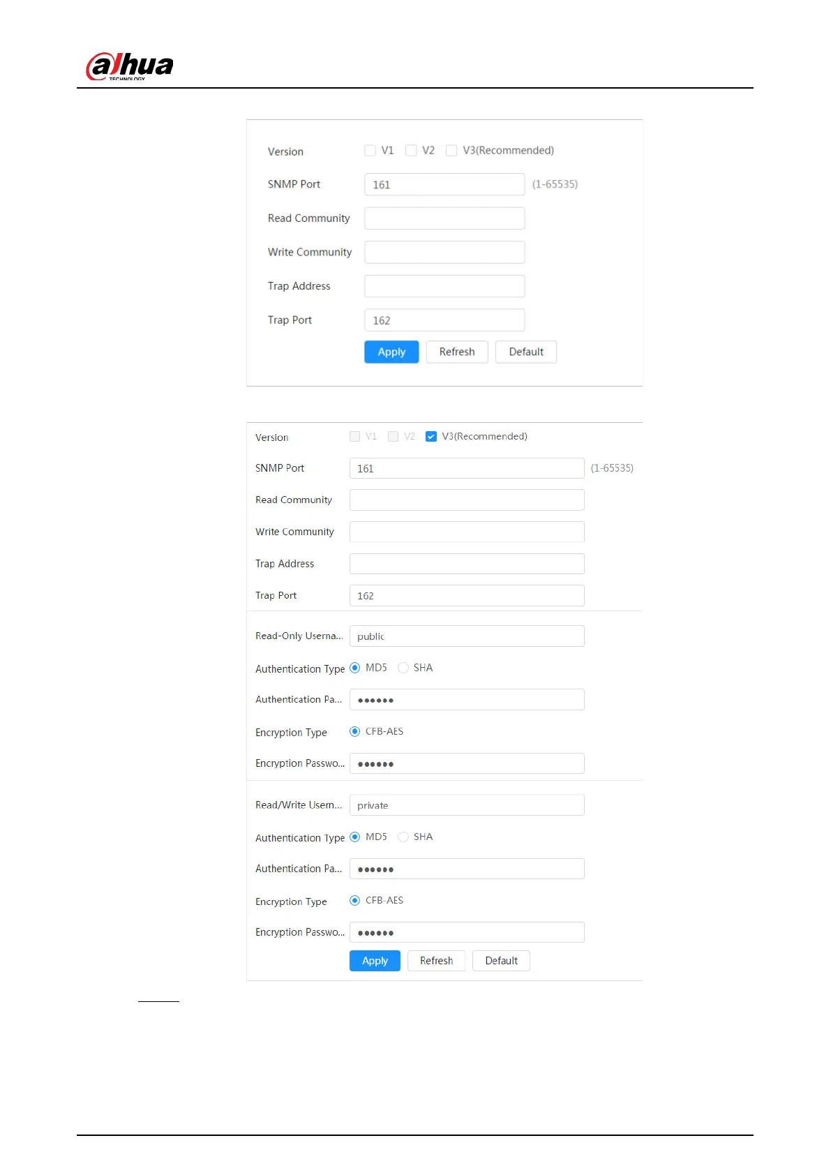 Select V3, and then V1 and V2 become unavailable. You can configure username,