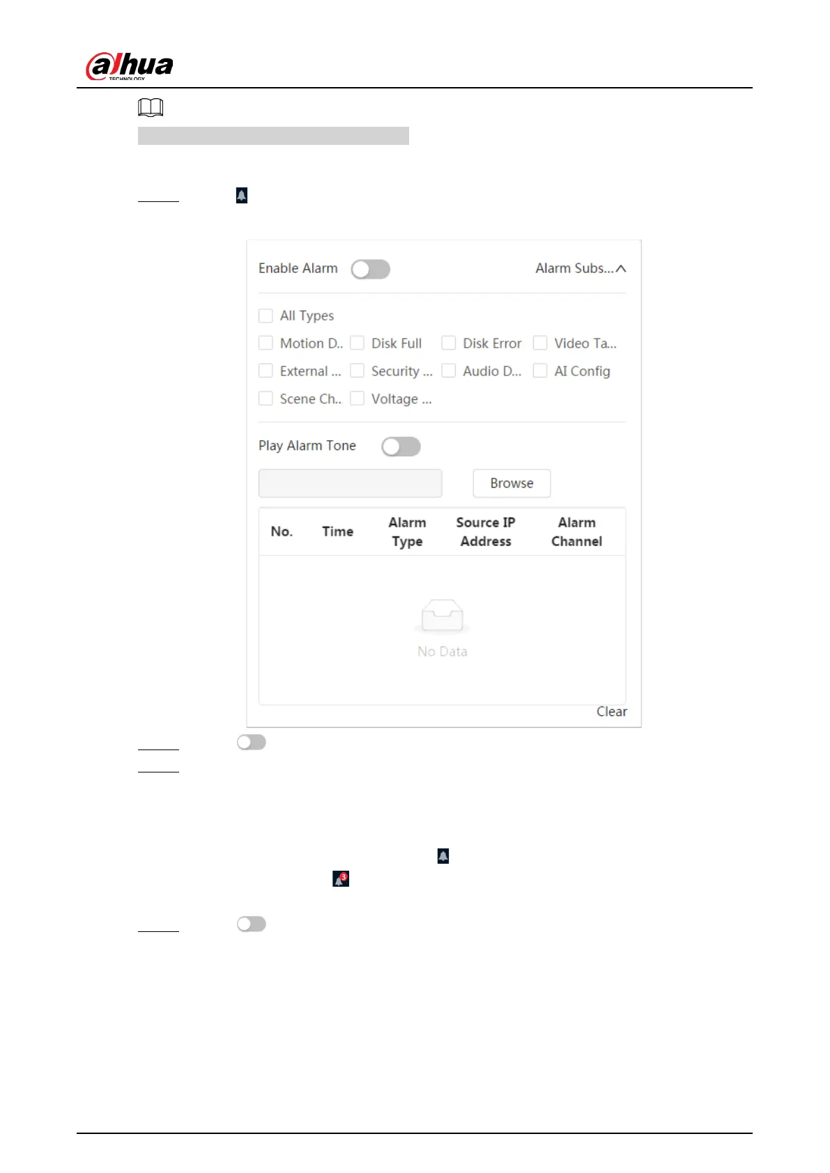 automatically. Click to view the details in the alarm list. You can click Clear to