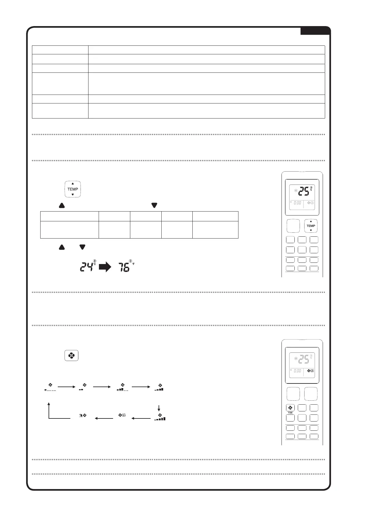 • In COOL, FAN, HEAT & AUTO mode: