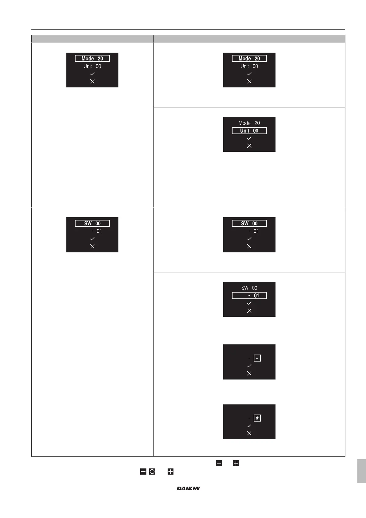 In the field settings tables, find the mode numbers that apply to individual indoor units
