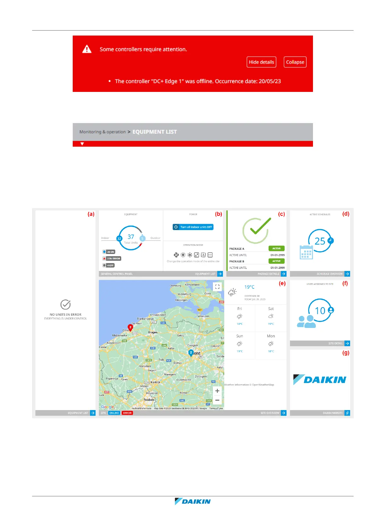 ▪ GENERAL CONTROL PANEL (b): gives an overview of all the indoor and outdoor
