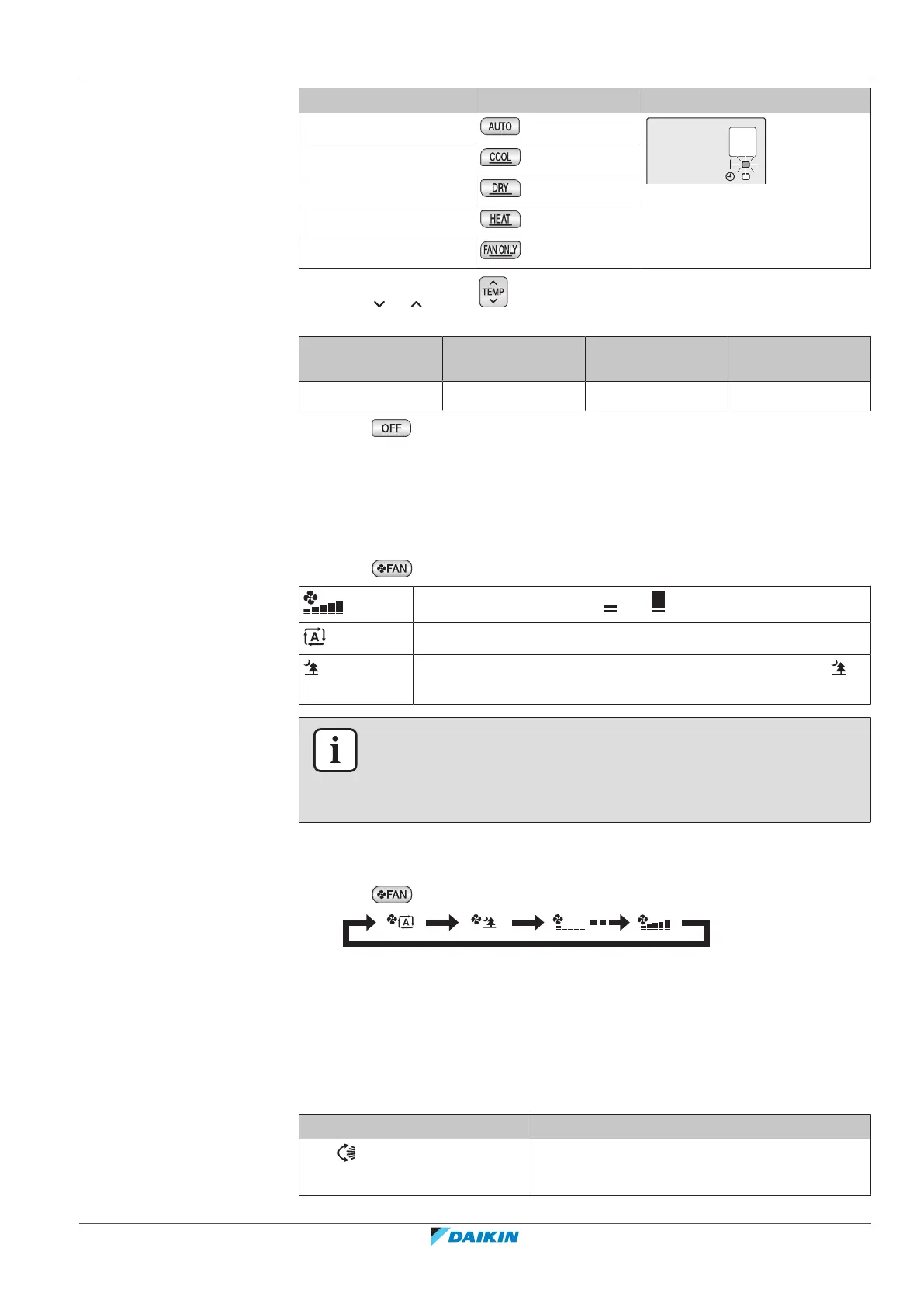 ▪ If the unit reaches the temperature setpoint in cooling or heating mode, the fan