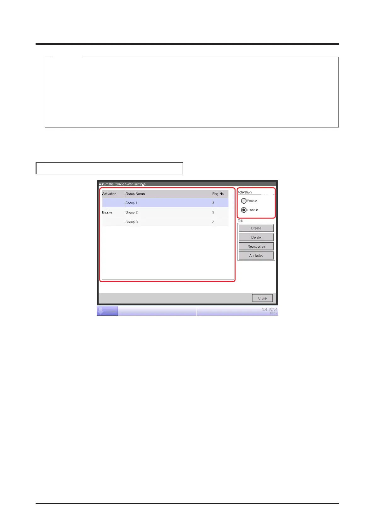 To enable the Auto Changeover function for the group selected in (14), select the Activation radio