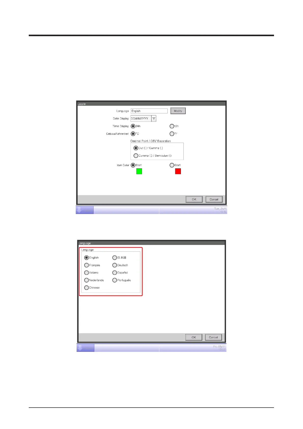 Locale screen (see “4-5 Menu List Screen: System Settings Tab”).