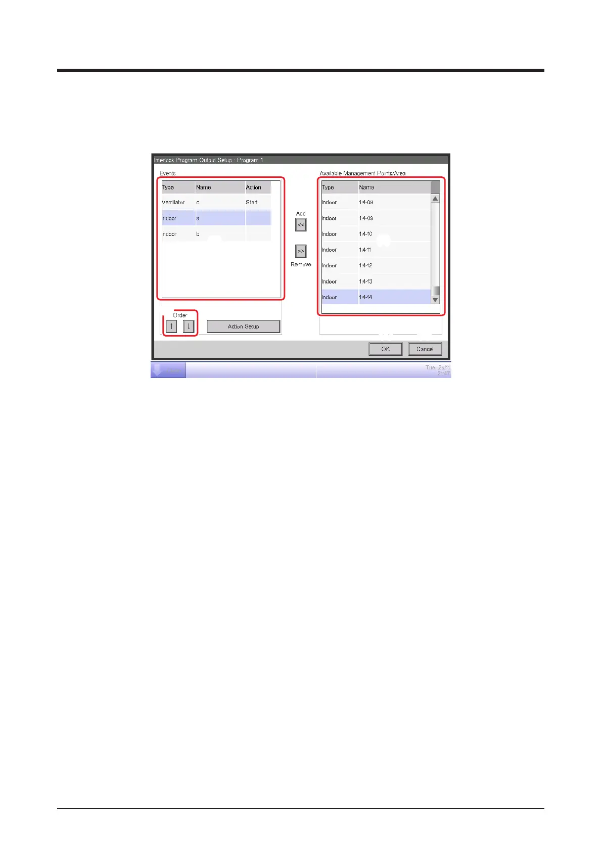 This screen is displayed when you touch the Modify button on the Interlock Program Setup