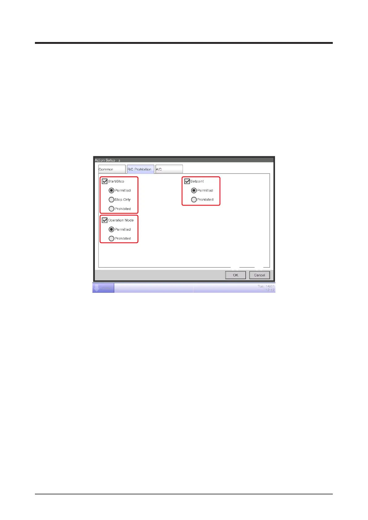 • R/C Prohibition Tab (Action Setup Screen)