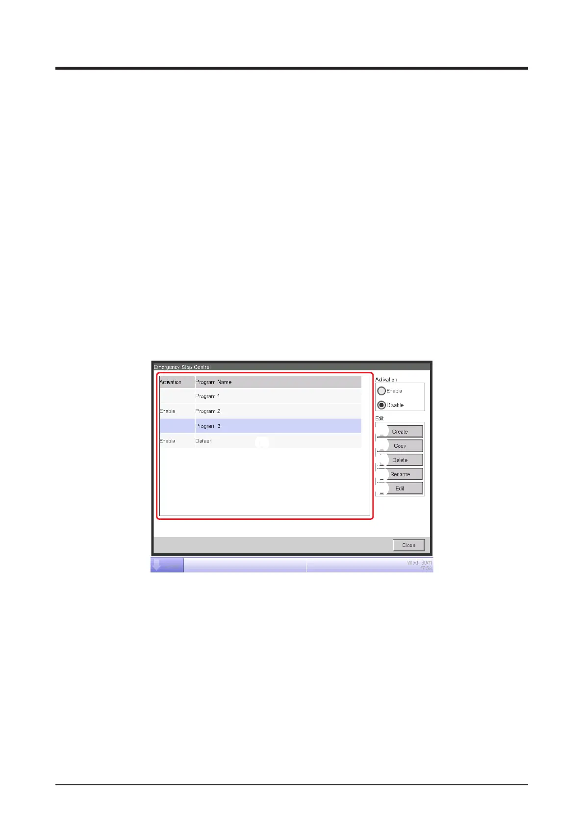 2. (1) is the list of emergency stop programs. Perform the intended operation by touching the