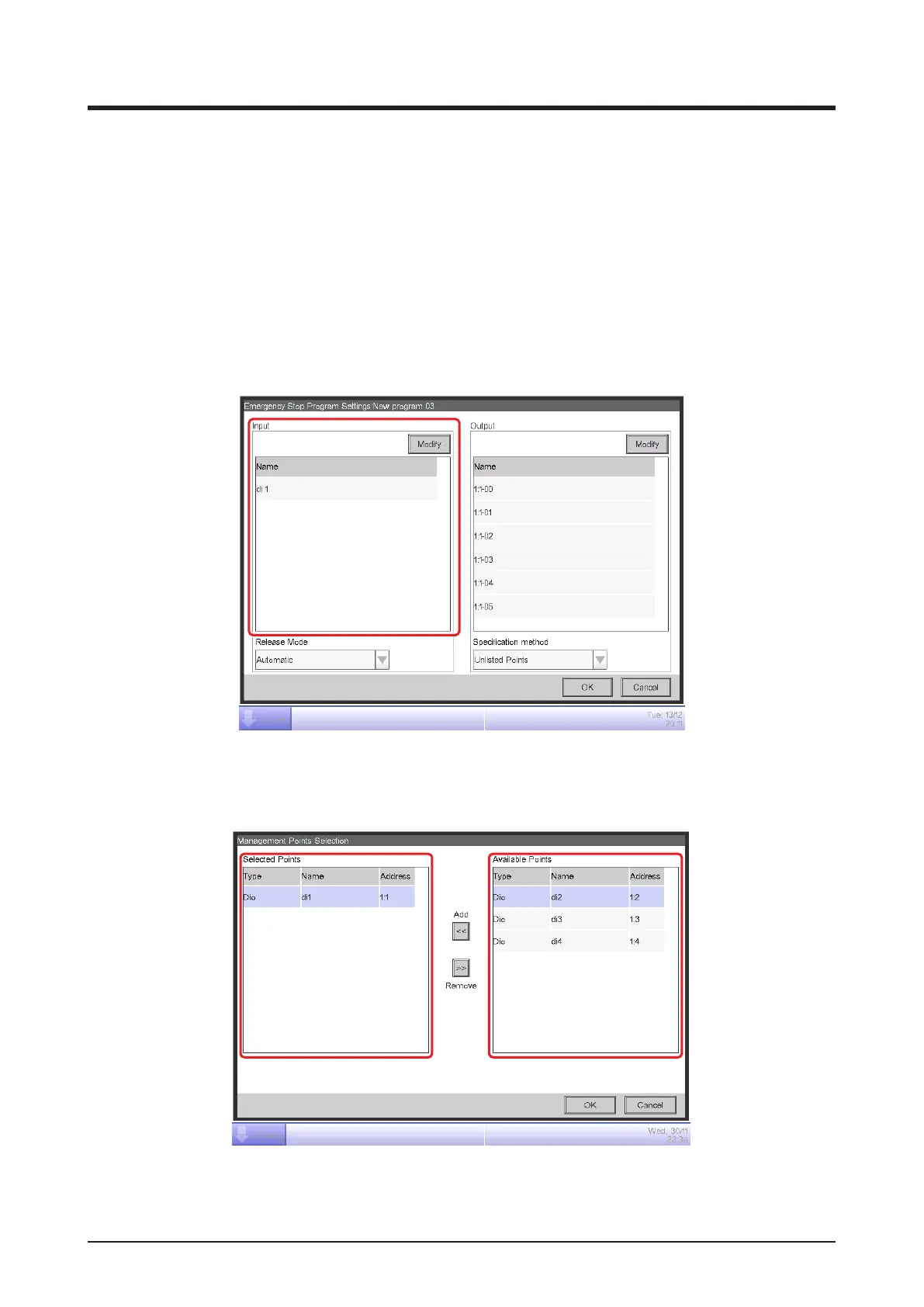 4. (7) is the list of management points input as emergency stop signal. Touch the Modify button (8)